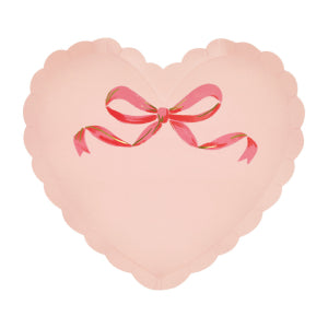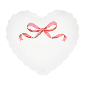 Set the scene with something sweet, these charming heart-shaped paper plates are made to be admired. Featuring a coquettish scalloped edge and a painterly bow design with gold foil highlights, they offer a fresh take on a classic look. The set includes soft pink and white plates, each with a matching color on the reverse for style from every angle.