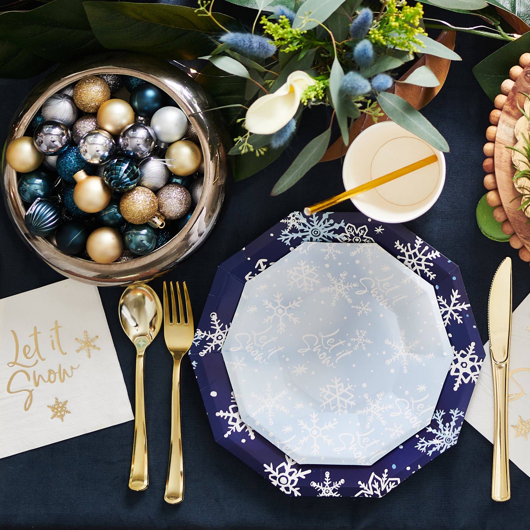 The magic of the first snowfall is captured in Coterie’s Let It Snow Party Set. With crisp snowflakes set against a powder blue background, these small plates will have your guests singing "Let it snow" by the end of the night. I