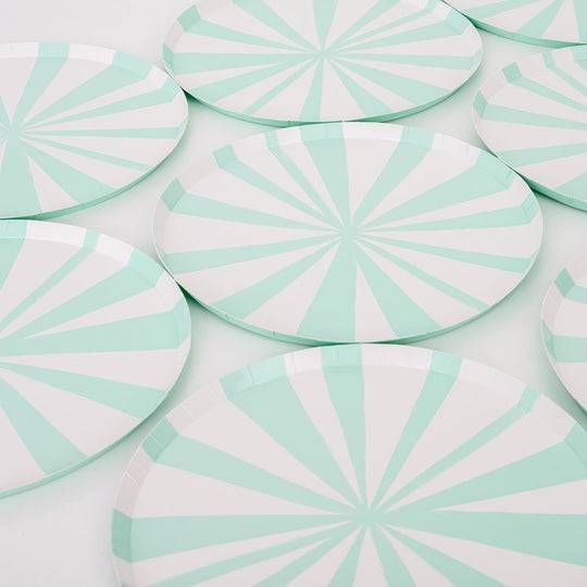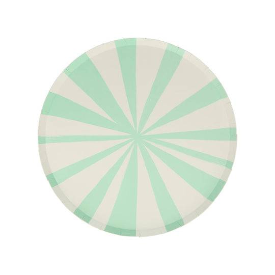 Meri Meri Mint Green Striped Paper Party Plate- Small - 8pk