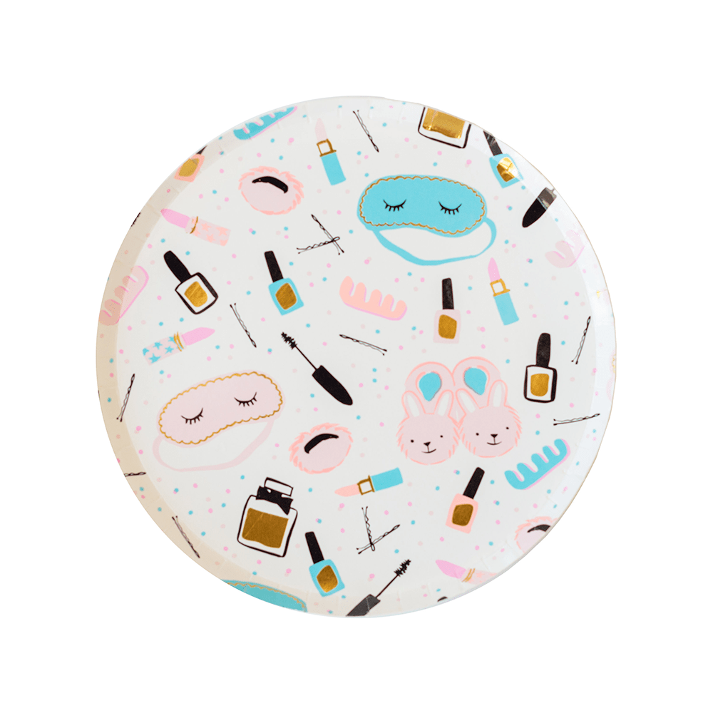 Slumber party approved! Featuring pops of neon and shiny gold foil, these plates are truly what sleepover and spa dreams are made of!