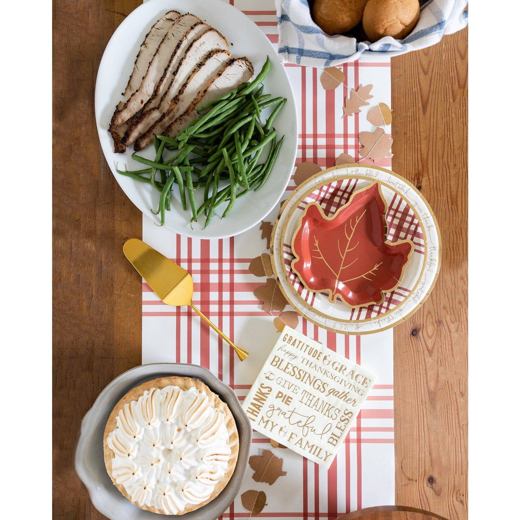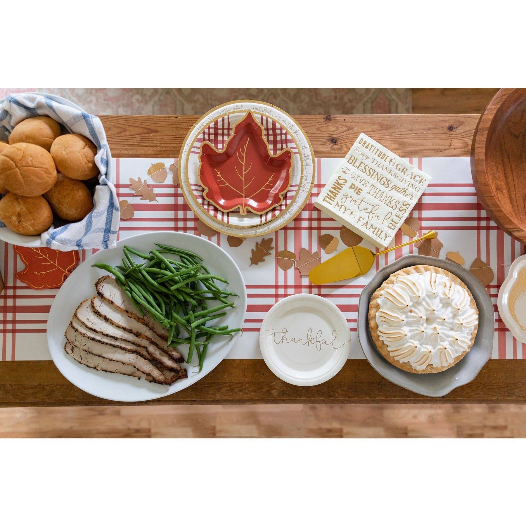 Gather with friends and family this Thanksgiving around a beautiful table set with this harvest plaid table runner. Just take as much as you need and use it again!