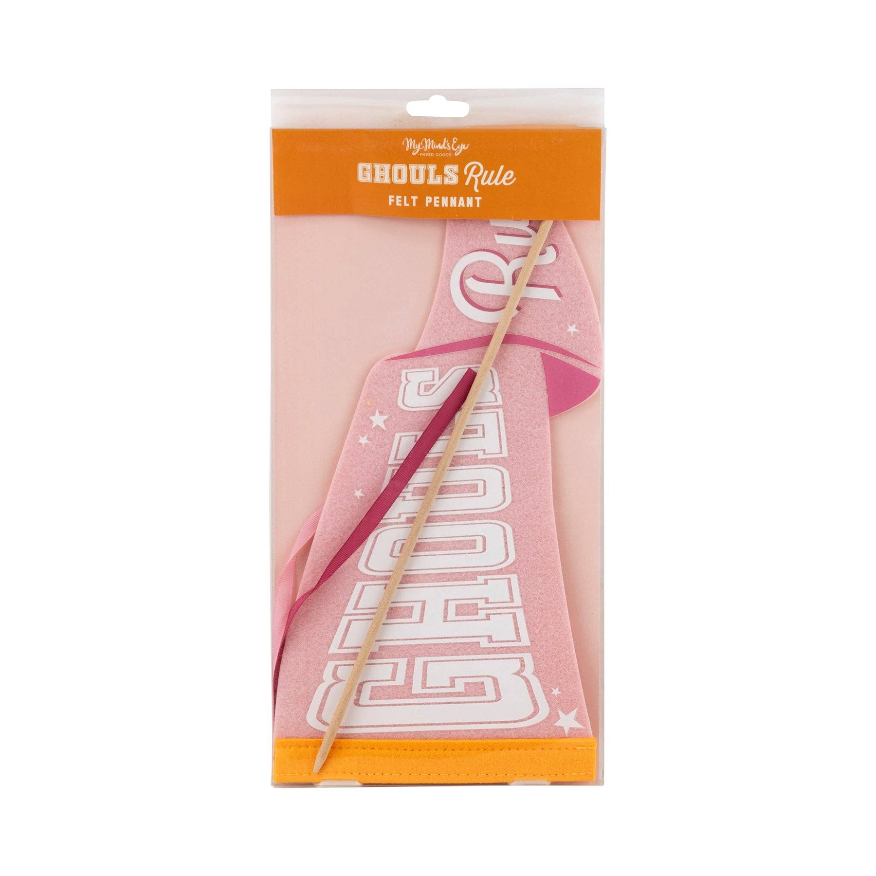 Make your Halloween decor stand out with our Ghouls Rule Felt Pennant Banner. This banner features a playful "ghouls rule" design, adding a unique and whimsical touch to your Halloween decorations!