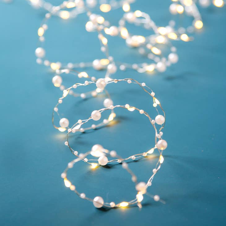 These delicate string lights are battery powered and have a warm yellow glow. They can be used to illuminate a Christmas table, staircase, mantel, mirror, or jar in December.
