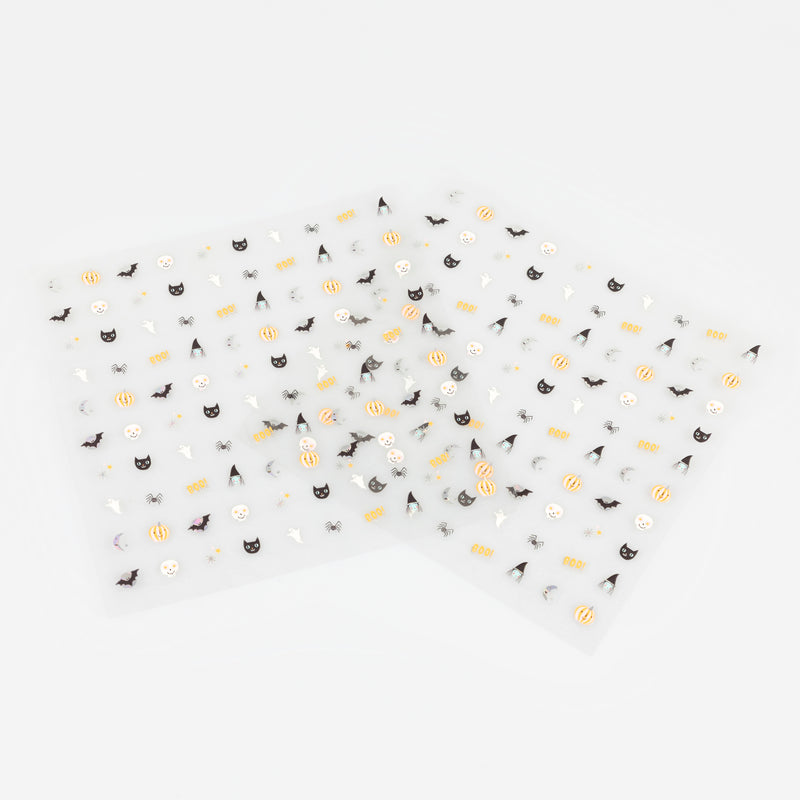 Ditch the usual candy and treat kids to a Halloween accessory with serious flair instead! Simply apply these chic nail stickers for enchanting effects in seconds. Presented in fun striped pumpkin packaging, this set features iconic Halloween motifs in classic shades and shiny silver holographic foil for a spellbinding shimmer. The perfect gift for a fashion-forward Halloween lover, as a party activity, or they make a great addition to Halloween party bags.