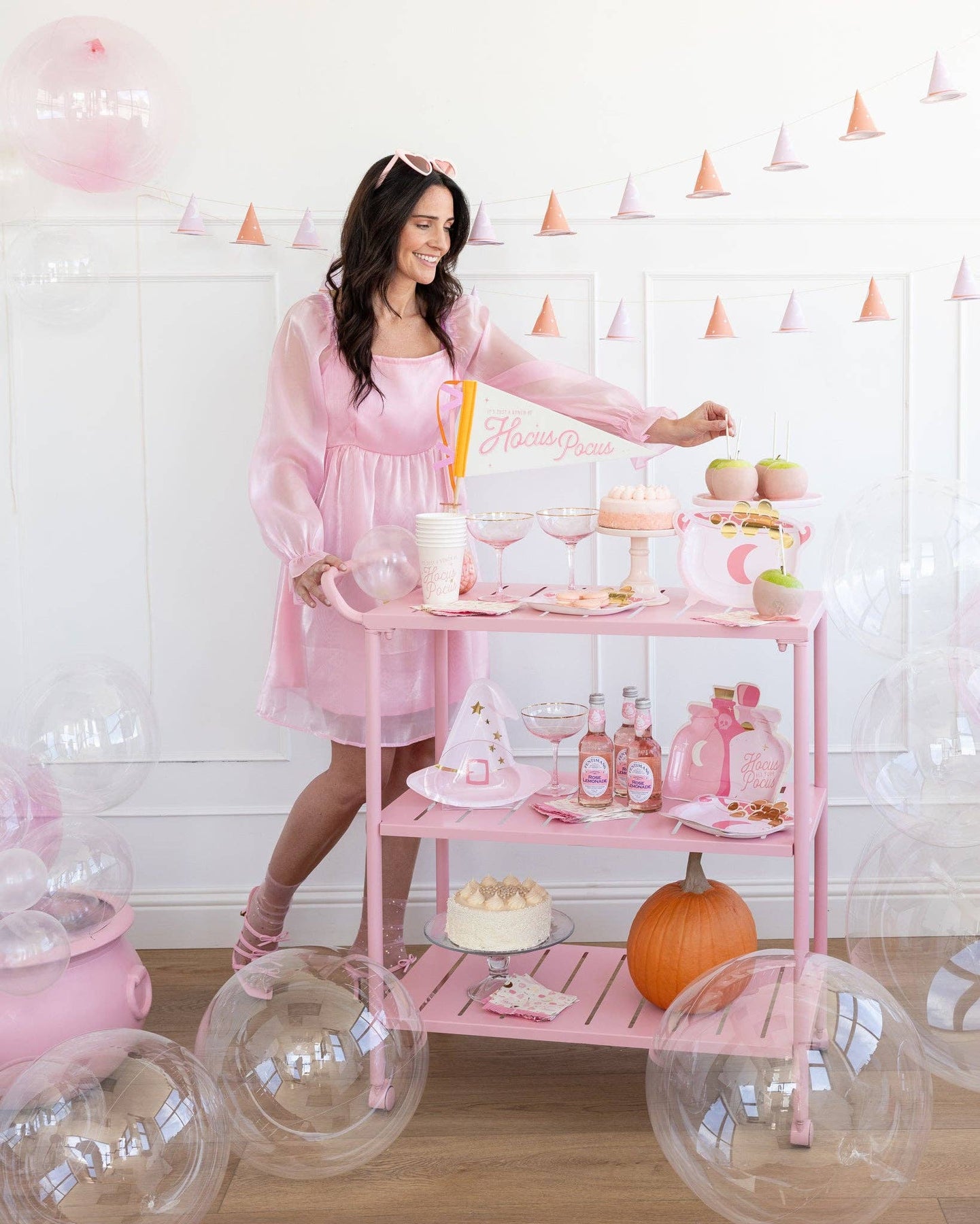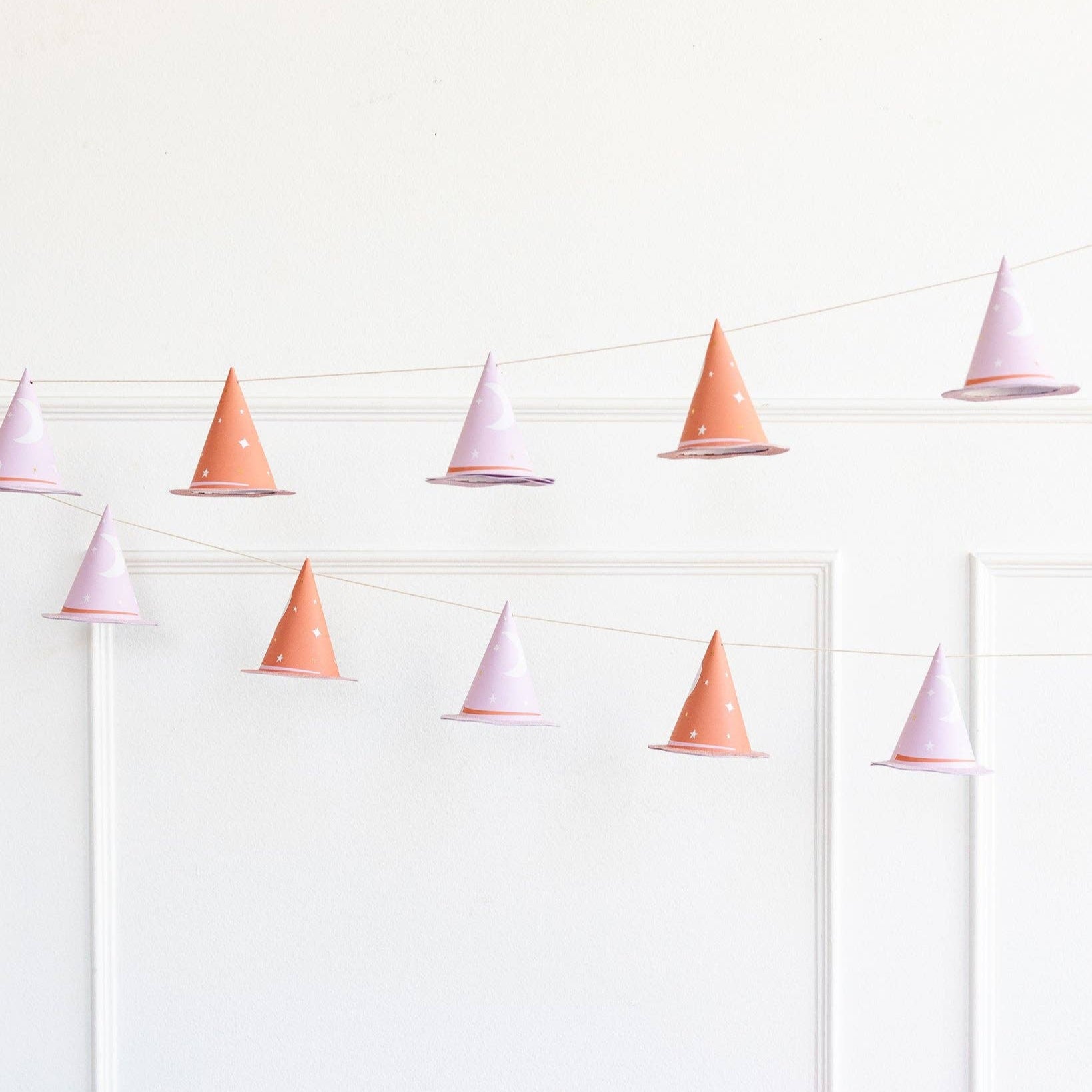 Upgrade your Halloween decor with this playful pink witch hat banner. Bring a touch of whimsy to your holiday celebrations with this unique and festive addition. Perfect for adding a pop of color and charm to any party or gathering.
