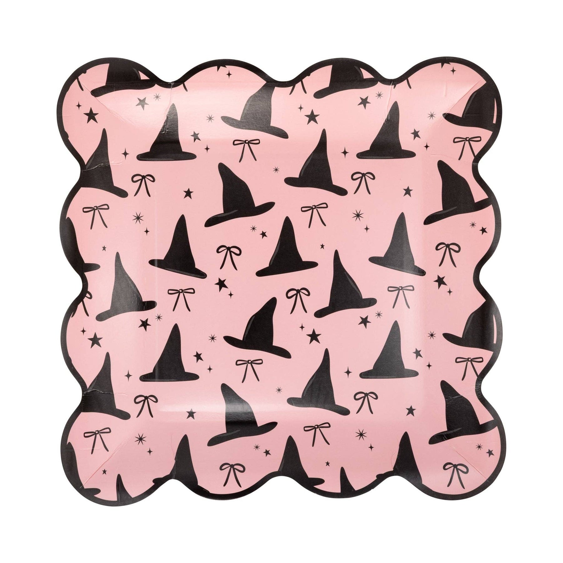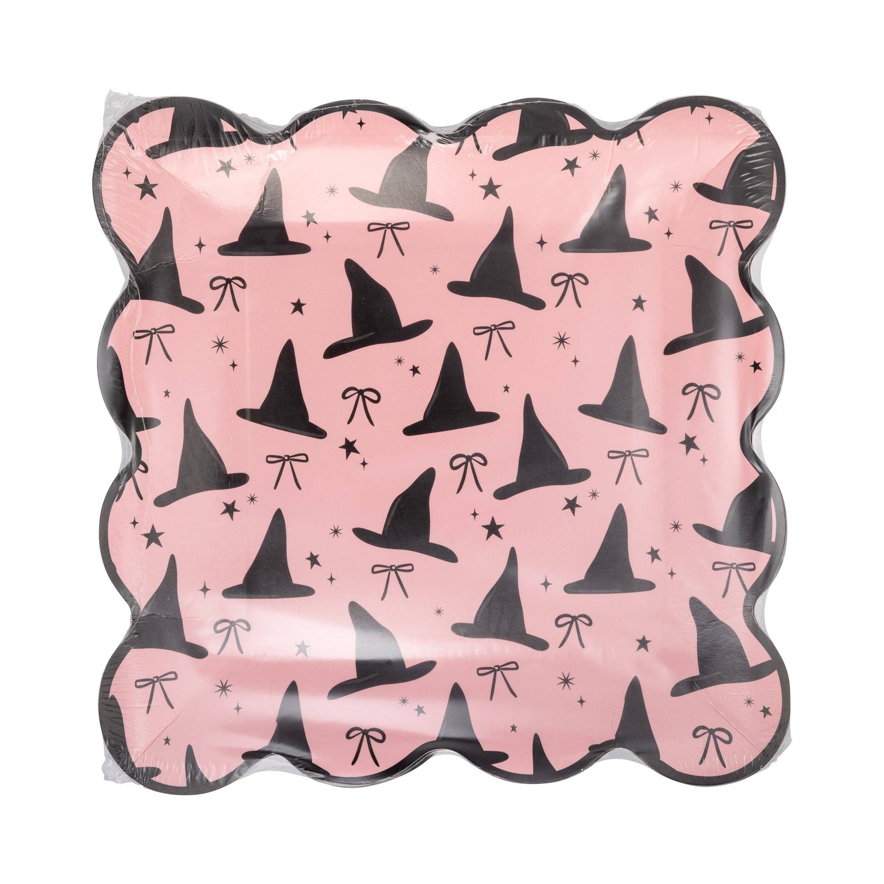 Bring a fun and whimsical vibe to your Halloween party with this set of pink witches' hat plates. Perfect for serving snacks or treats, their festive design adds a playful pop to your spooky celebration. Durable and striking, these plates are a great way to liven up your Halloween decorations.