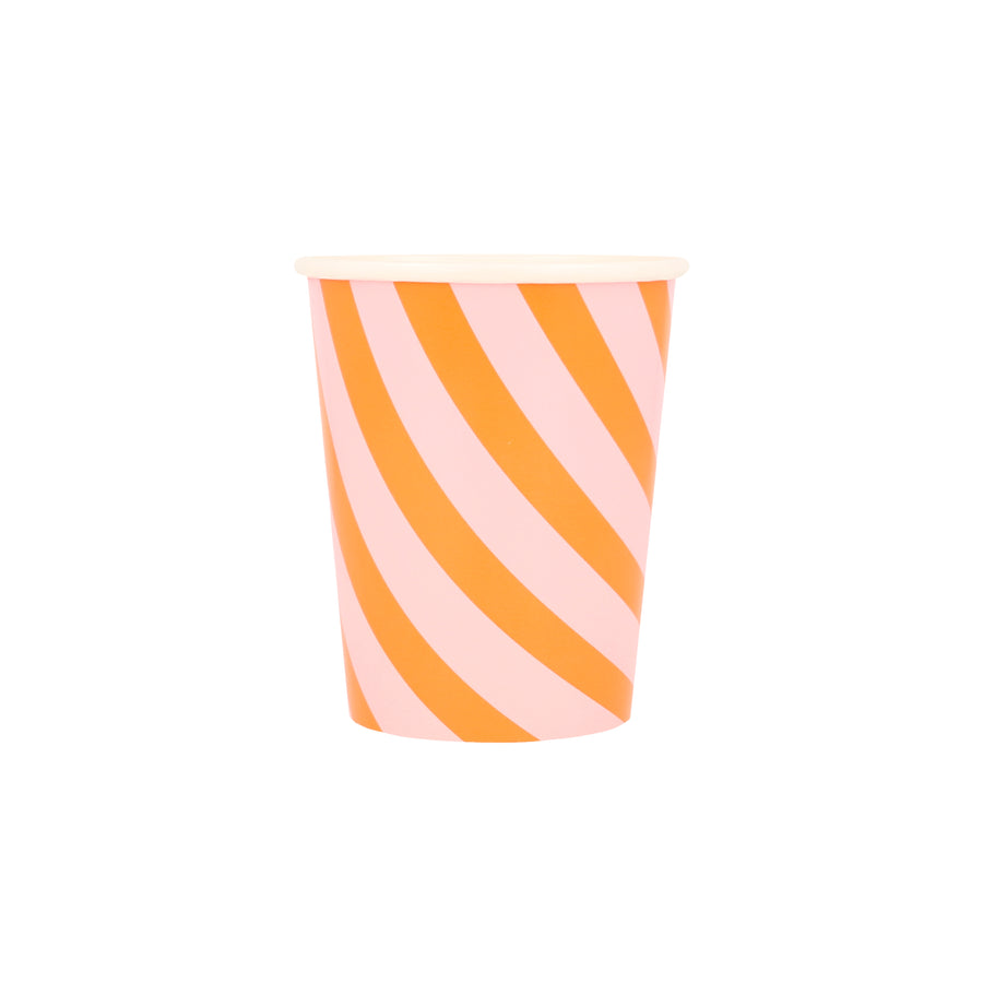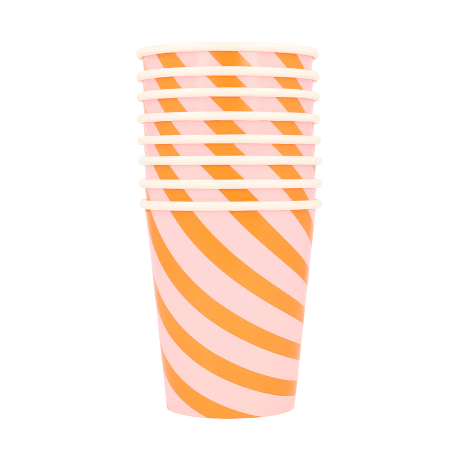 Meri Meri Halloween Pumpkin Pink & Orange Stripy Paper Cups 8 pack