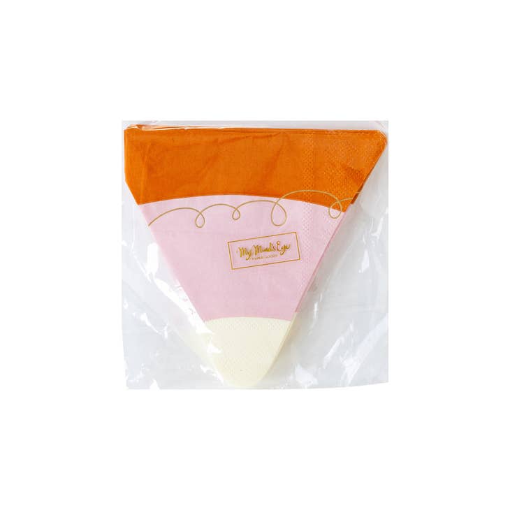 Spooky sweet treats always require a napkins. Make sure that your party napkins bring a haunted Halloween flair to the table by using these whimsical candy corn shaped napkins. Featuring a shimmery gold foil accent, these die cut party napkins add a frightfully fun touch to any Halloween party.