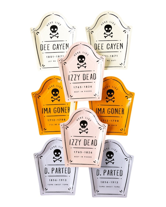 These hilarious and spooky RIP plates will have your little ghouls and goblins howling with laughter. Crafted in bright pastel colors, they add a playful twist to your table setting. Perfect for trick or treat parties or spooky get-togethers with friends, these gravestone-shaped plates are sure to make a statement.