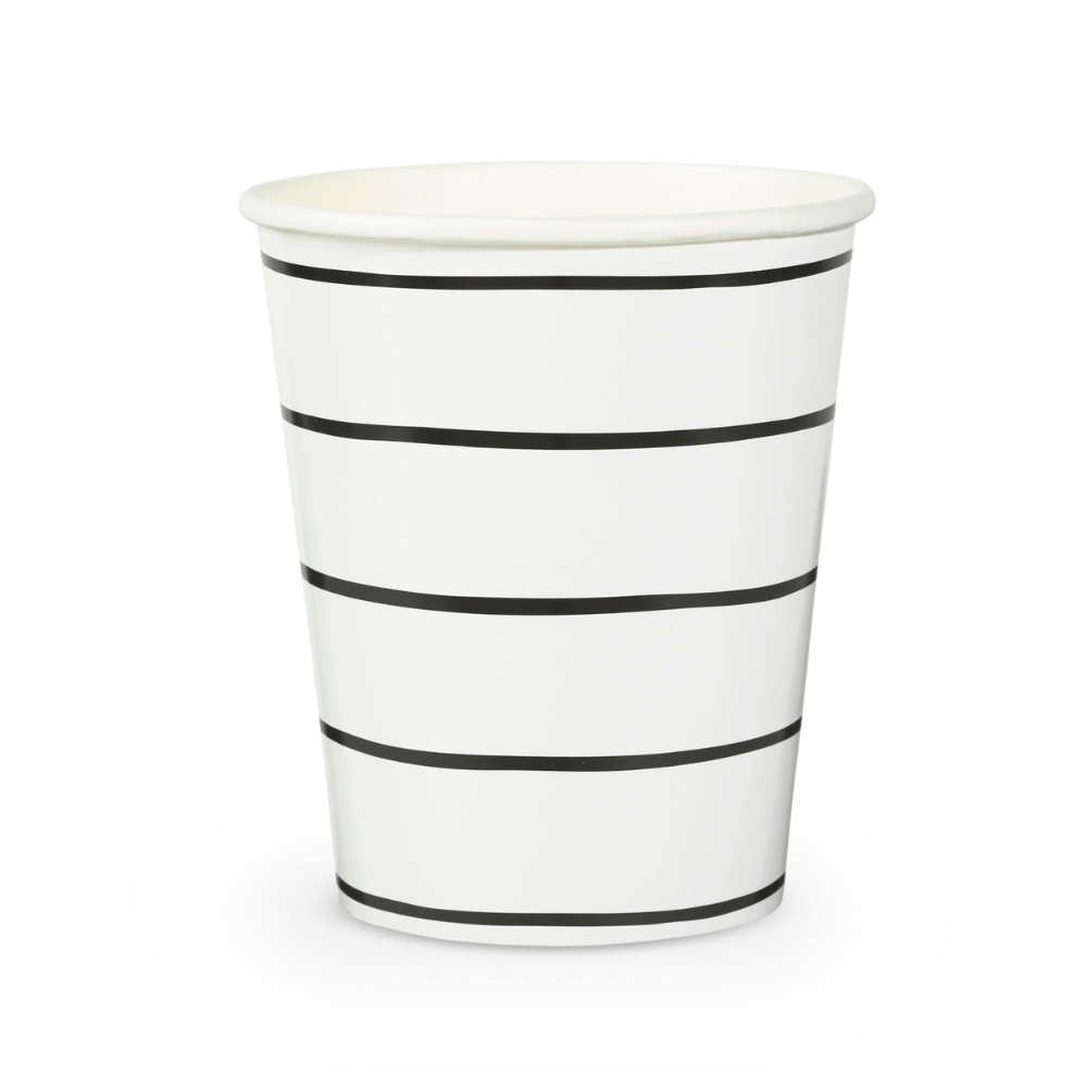 Black and White Striped 9 oz Cups Frenchie - 8 Pack S7103
