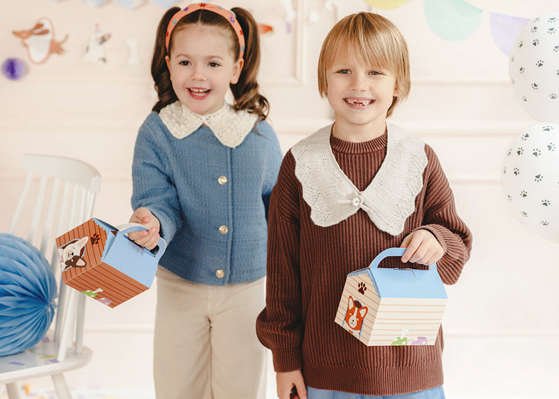 Make your puppy party unforgettable with these adorable Doghouse Gift Boxes! Perfect for birthdays, each box doubles as a fun doghouse-shaped treat box or goody bag, bringing joy and surprise to every guest. Load them with treats and watch tails wag with delight!
