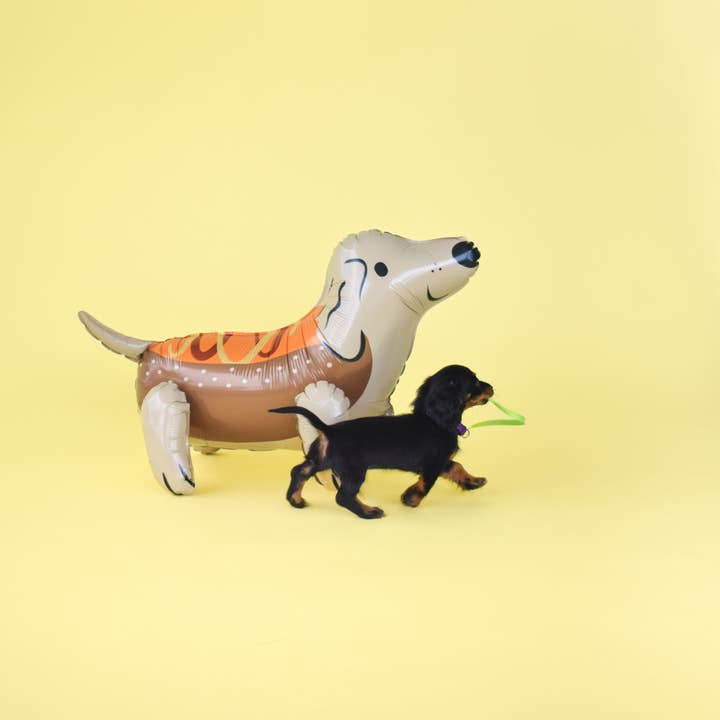 Transform your space with this charming dachshund-in-a-hotdog-costume balloon that brings instant fun to any celebration! Perfect for Halloween festivities or year-round pet lover décor, this whimsical mylar creation captures all the playful spirit of Trick or Treat Street. The air-filled design makes setup a breeze, and it stays delightfully inflated to keep the party vibes going strong. Whether you're hosting a spooky soirée or simply craving some pup-themed charm, this wiener-fully delightful balloon is sure to get tails wagging and smiles spreading!