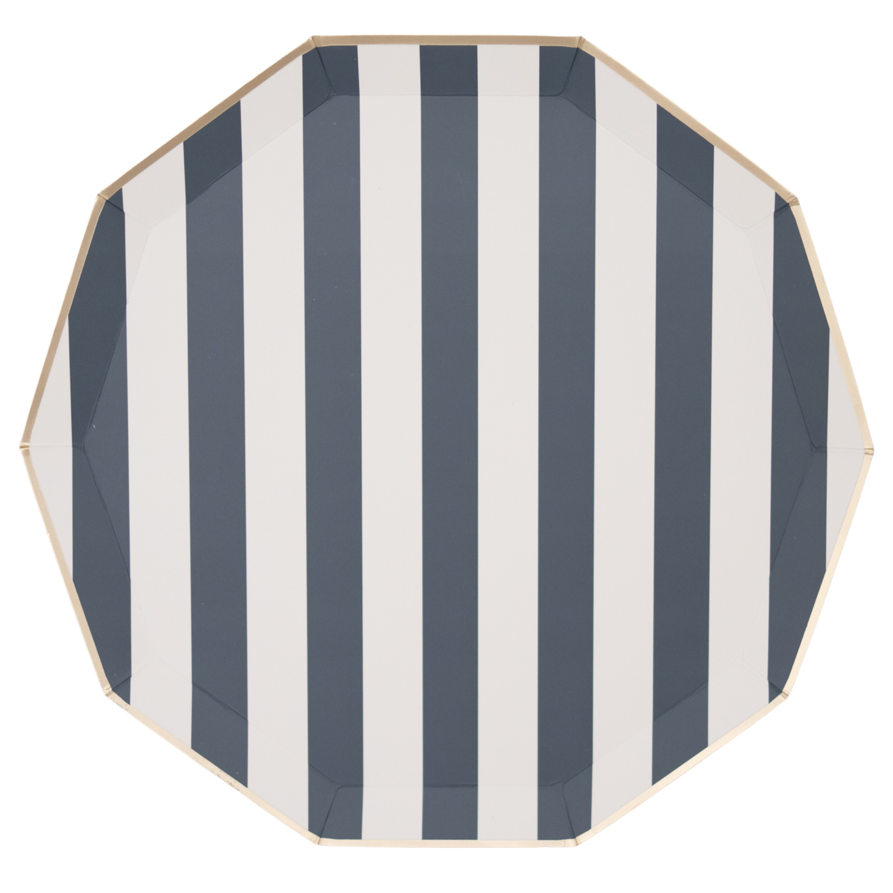Midnight Blue and White Striped Paper Plates Large- 8pk