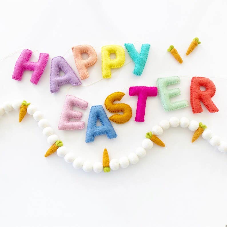- Our felt garlands add the sweetest touch to your home decor! They are perfect for holidays and other special celebrations, or as decor for your little one's play room or nursery. Made from 100% wool, our felt garlands are eco-friendly and free of synthetic dyes. Each ball and carrot measures approximately 1 inch and can be easily moved along the twine to customize your spacing and length.