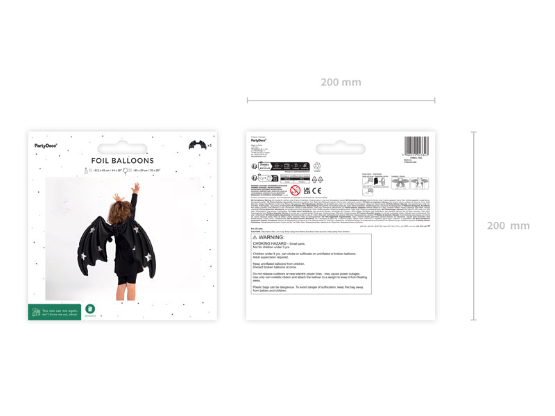 • Foil balloon in the shape of bat wings, with strings to attach to the back