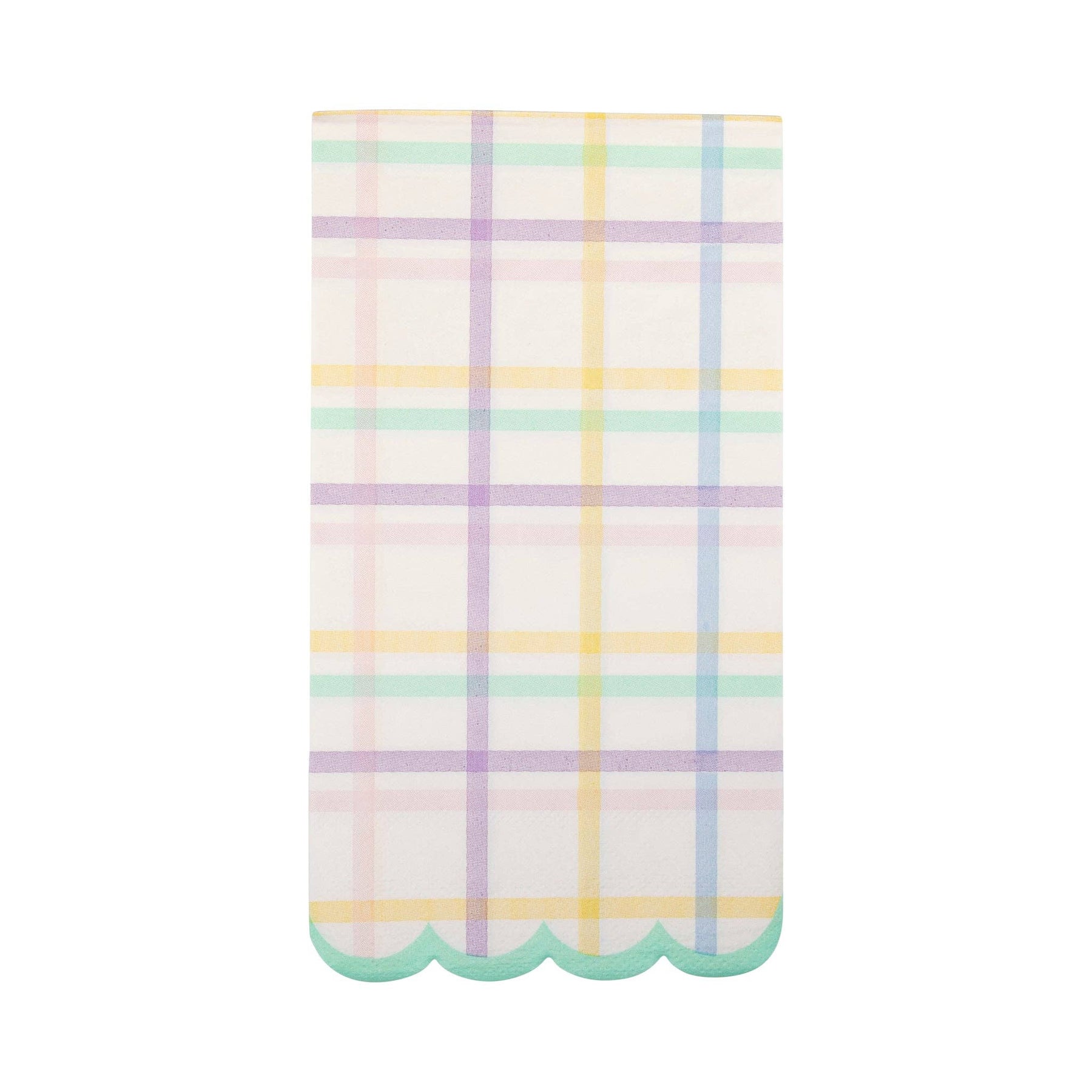 Spruce up your hosting skills with this Pastel Plaid Scallop Napkin, and bring some springtime flair to the party! This whimsical paper napkin boasts a vibrant plaid design, making it a must-have for any get-together.