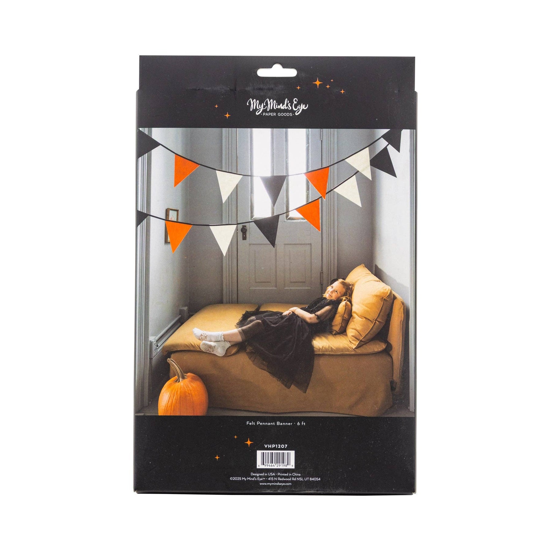 Celebrate Halloween with our cheerful Felt Pennant Banner! This lively decoration brings a burst of color and spooky charm to any room. Drape it over doorways, mantels, or walls to quickly turn your space into a festive party zone. Simple to hang and designed for reuse, it’s the perfect way to kick off your Halloween fun year after year!