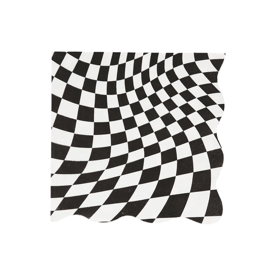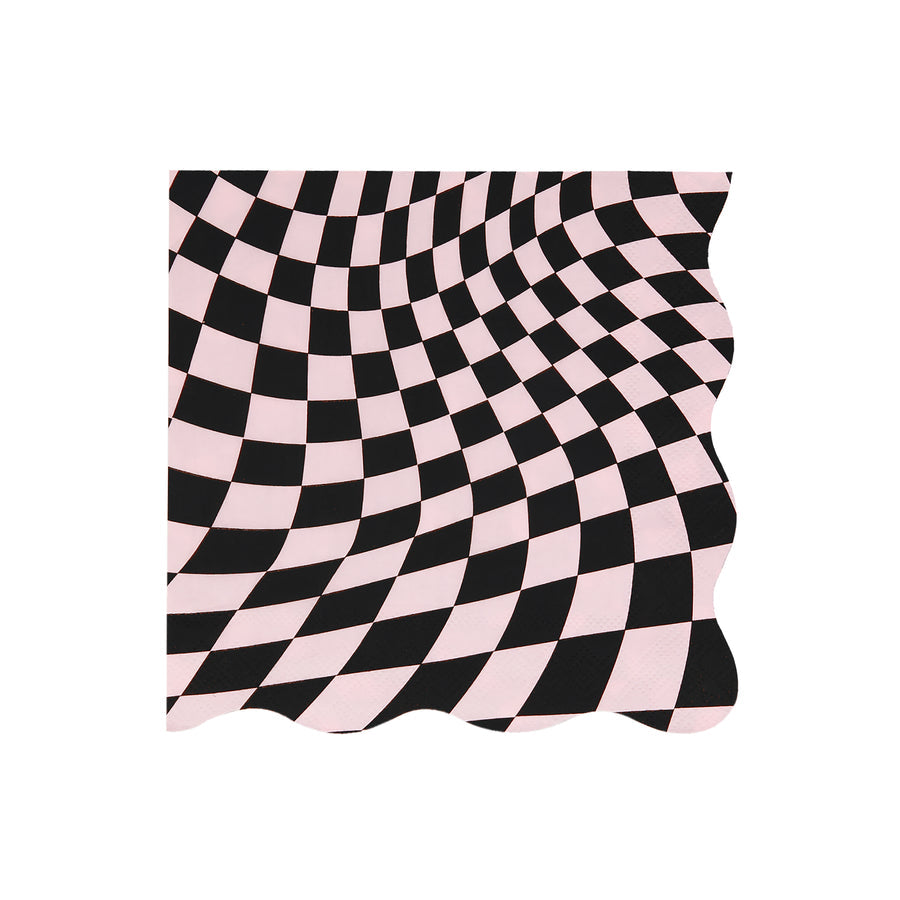 • Each pack contains 6 orange, 5 pink and 5 white napkins with a black checkered design