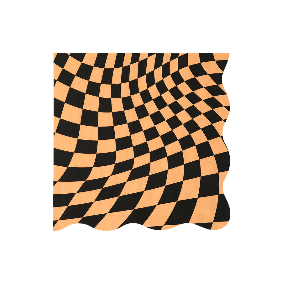 Take a look at these cool Halloween napkins! The groovy 60s psychedelic feel is achieved through a mix of orange, white, and pink colors with a swirling checkered design. These napkins are ideal for parties of all ages and can be easily coordinated with other Halloween tableware options.