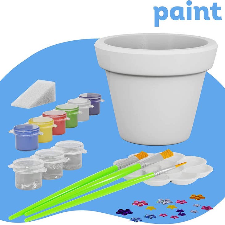 - Kit includes: casting mold, mold funnel, casting powder, sandpaper, instruction guide, 6-color paints, paint palette, paint sponge, 2 paintbrushes, glaze and glaze brush, shovel, soil disk, 3 seed packs, 3 wooden plant markers, wooden tray, watering bottle, beautiful instruction guide