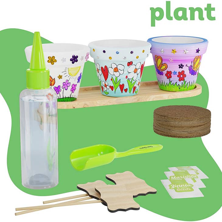 Cast, Mold, Paint & Plant your own small garden: Create the pots with the special casting formula; once dry, paint it and the plant markers. Sow the Marigold, Cosmos, and Zinnia flowers - with vibrant colors and pleasant scents. Follow along with the included step-by-step instructions.