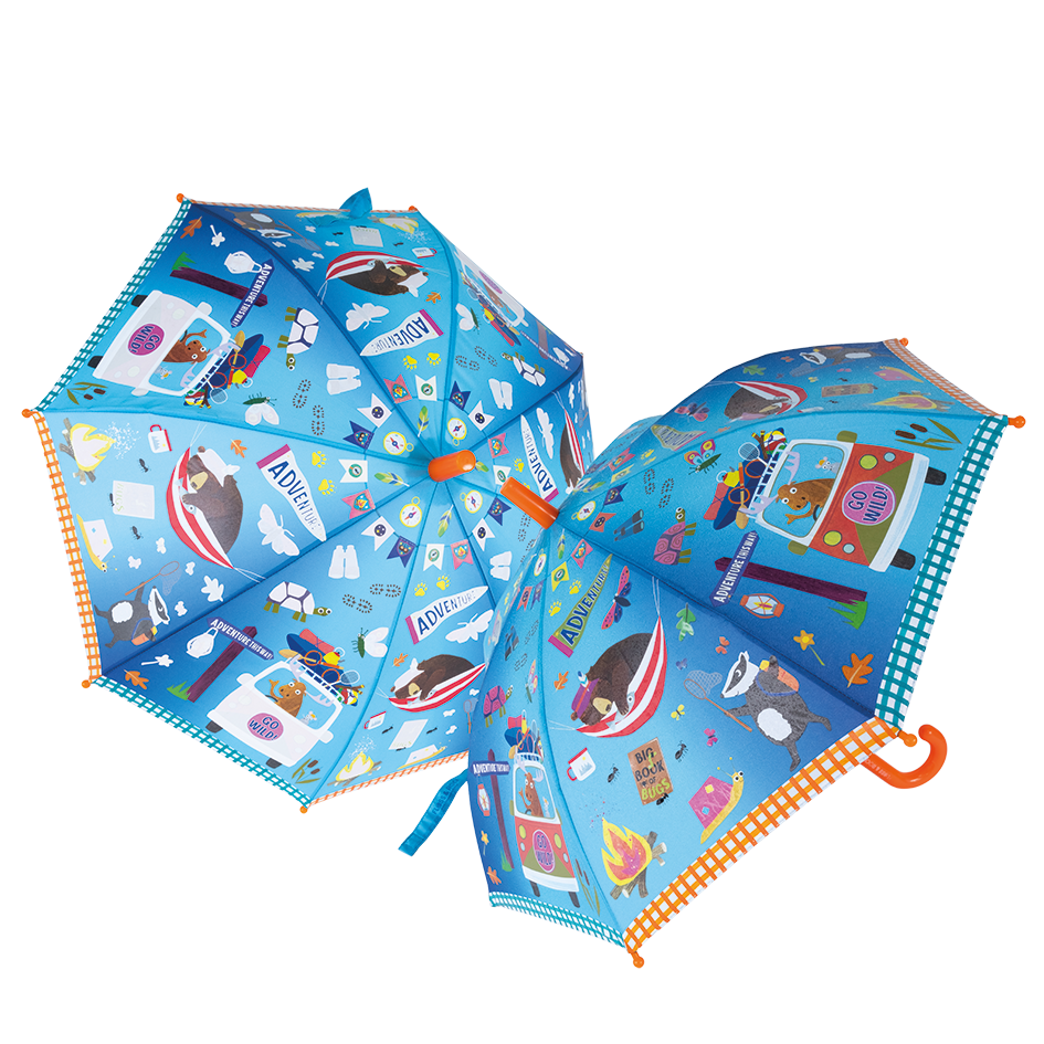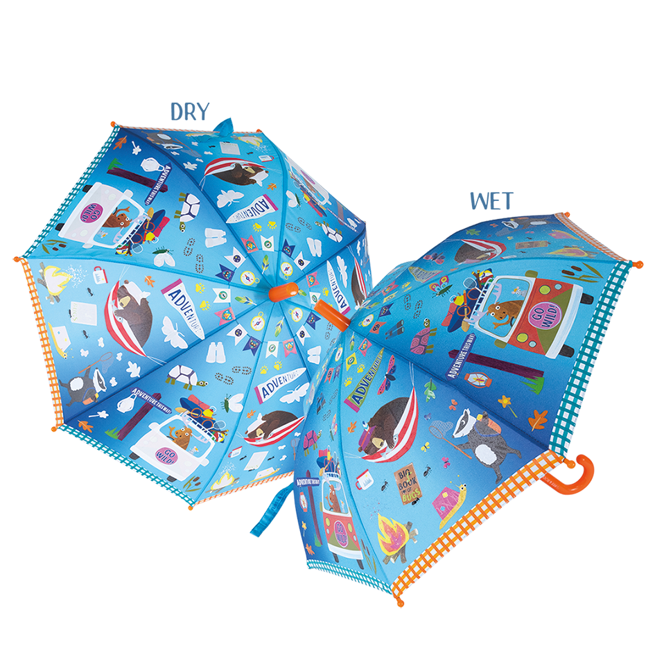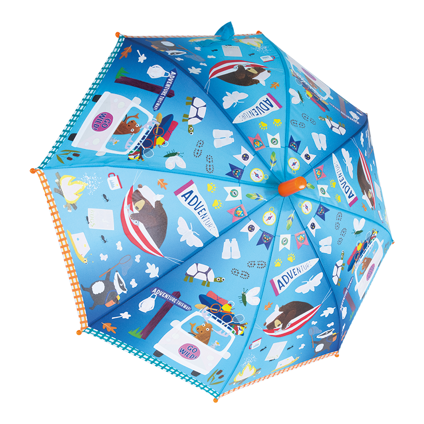 Who doesn't love rain? Your little ones will soon adore it with their Magic Colour Changing Umbrella! Every time you venture out in the rain, the design transforms into vibrant colors. It's ridiculously fun! Watch as the white areas magically shift shades in the rain, and when it dries they return to white until the rain returns. This Adventure design includes a sleepy bear, daring badger, a moose in a campervan, and much more! Plus, it comes with a convenient velcro tie to keep it tidy when not in use.
