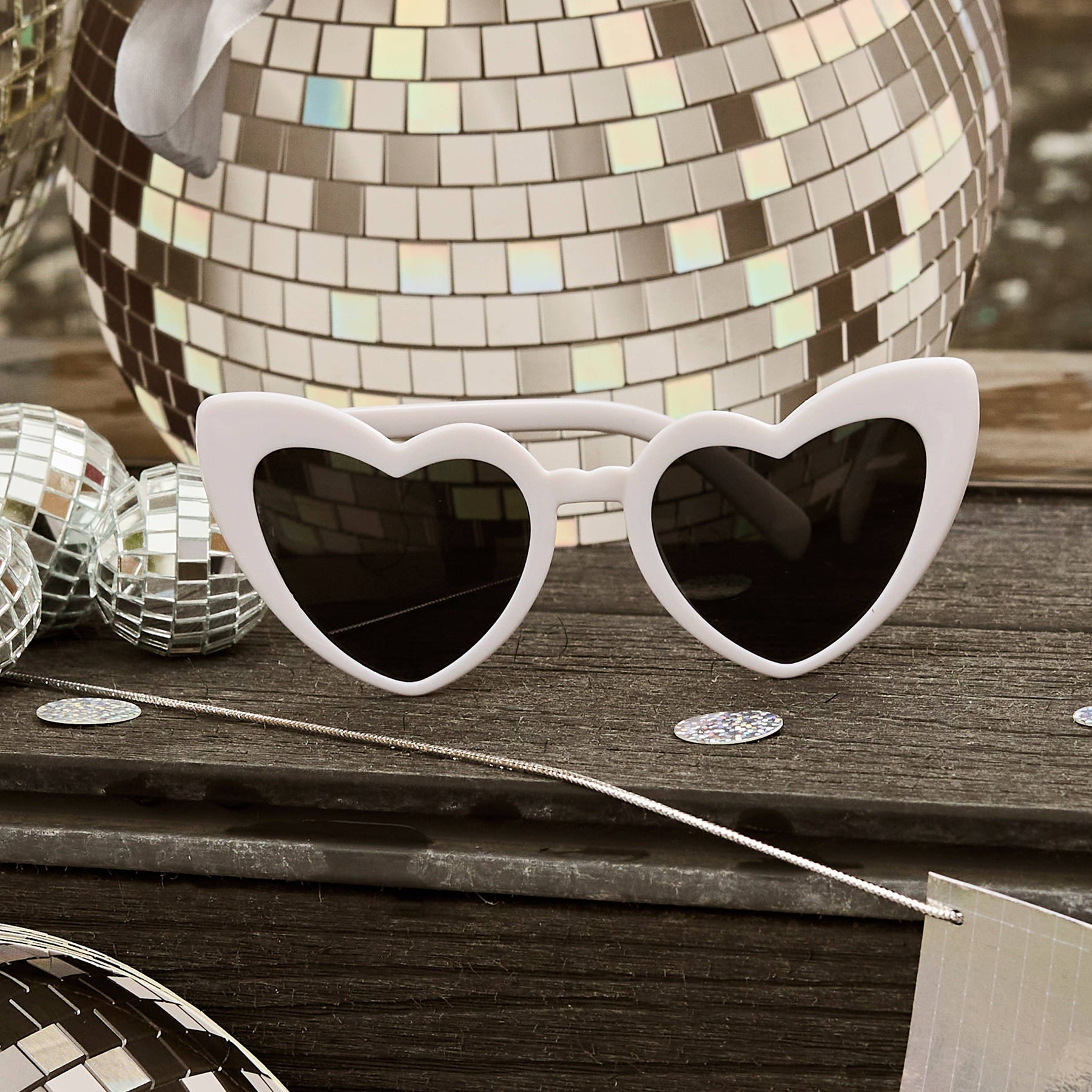 Show off your bride-to-be status with these adorable white heart sunglasses! Perfect for turning heads and adding a fun touch to your pre-wedding celebrations.
