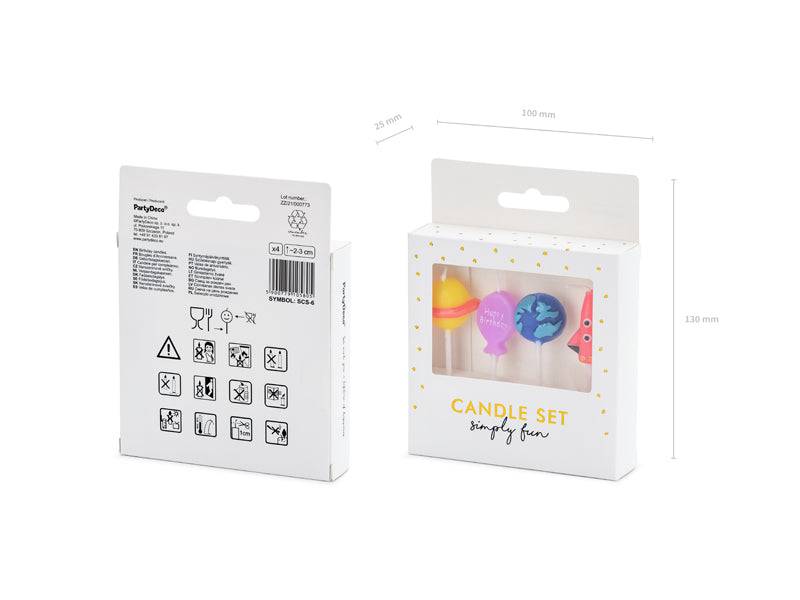 These candles are out of this world! Our outer space candles are perfect for a birthday cake or any other space-themed party. Includes a rocket ship, planets, and Earth design in fun, bright colors.