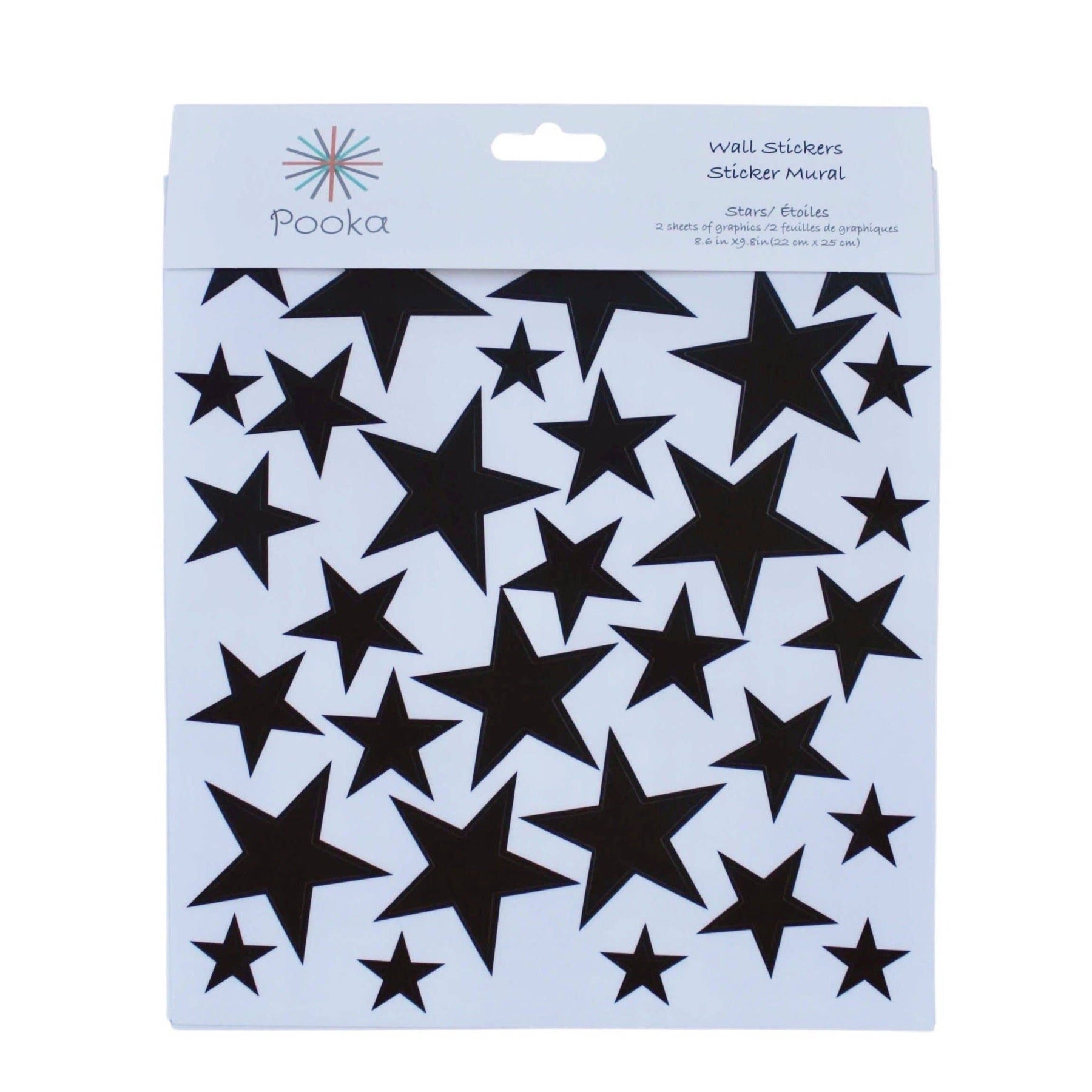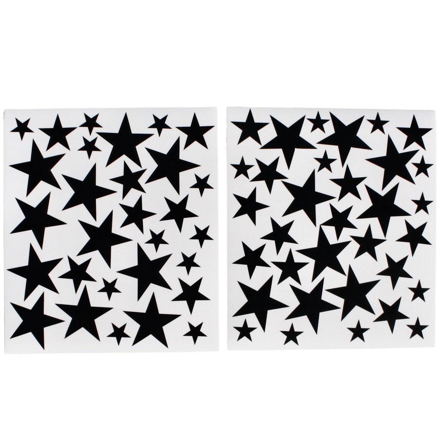 Package contains 66 black stars in 3 sizes (1, 2 and 4 inches). Removable wall vinyl. Matte finish.