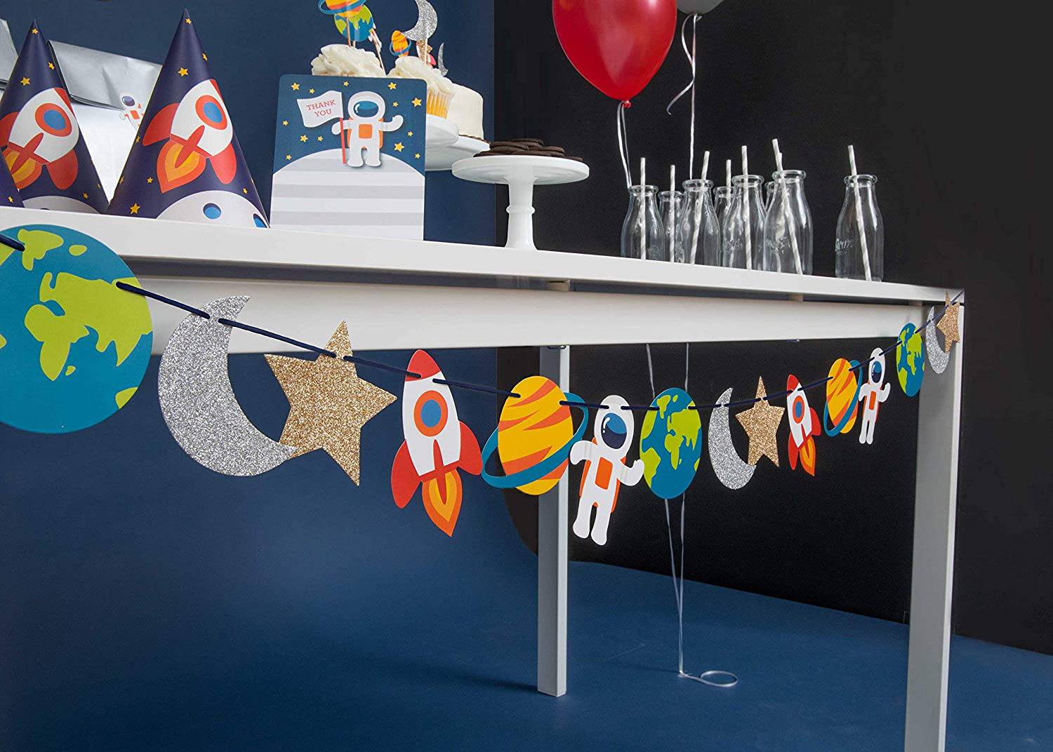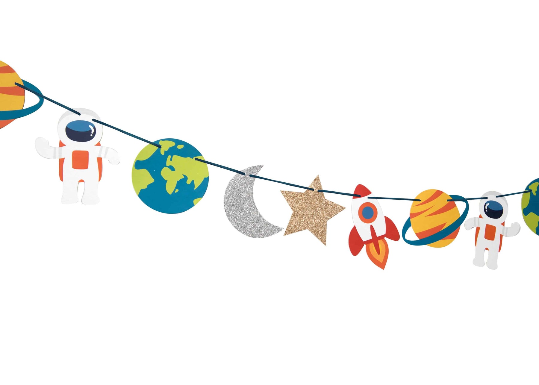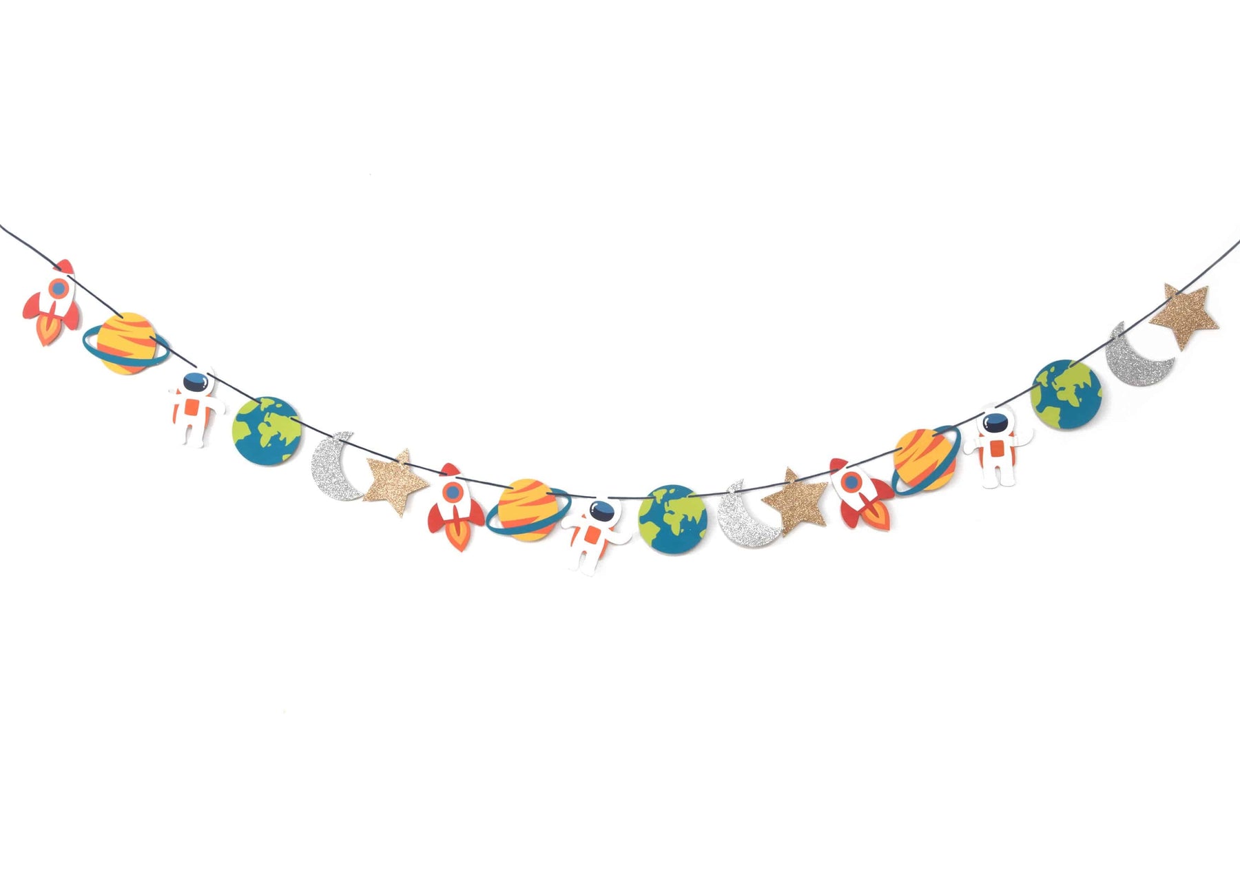 Our Outer Space Garland is out of this world! It's perfect for your Space theme birthday party!