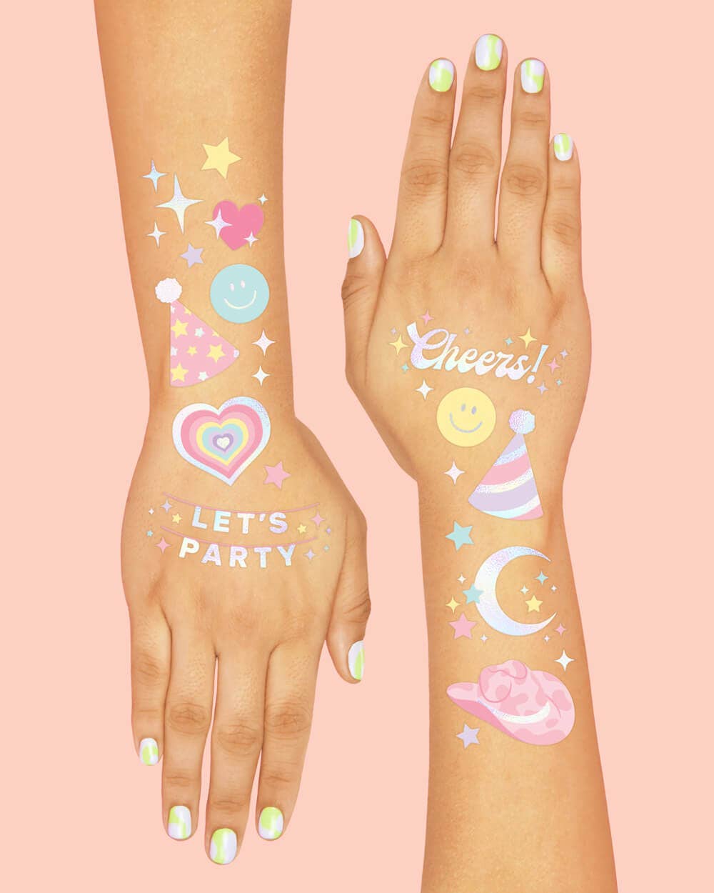 Party vibes only ✌️ Whatever you're celebrating, do it in style with our preppy pastel tattoos! Nothing keeps the party vibes going better than a little pastel and a lot of smiles!