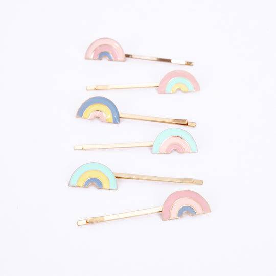Make your hairstyle look rainbow bright no matter what the weather, with this wonderful set of hair slides. They feature colorful rainbows crafted in enamel.