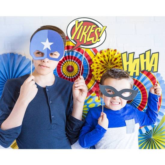 Wham! Bam! Yikes! Our Comic Superhero photo booth kit is a great way to celebrate in style and create memorable photos with family and friends!This photo prop kit contains 10 unique props and 10 display sticks.