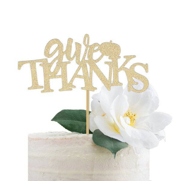 It's time for some thanksgiving fun, celebrate the holiday spirit with this sparkling give thanks cake topper. The glittery design features a festive "give thanks" message and is guaranteed to add some magic to your feast!