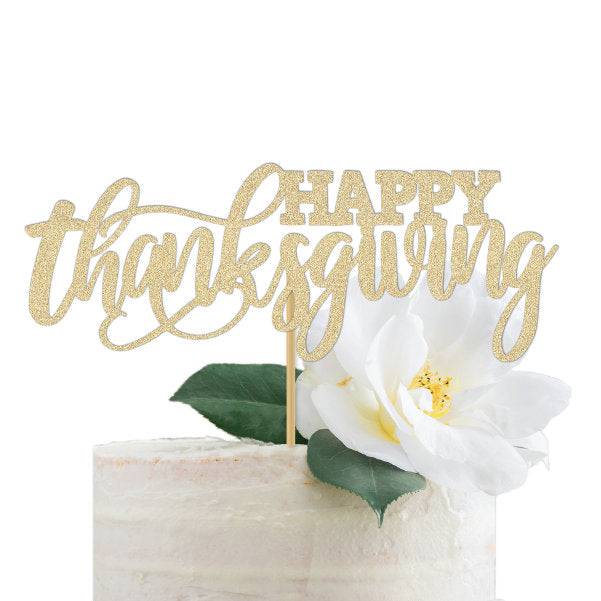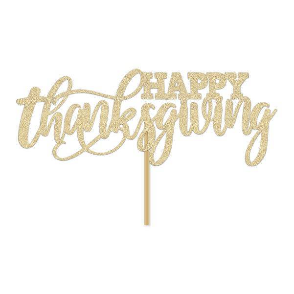 It's time for some thanksgiving fun, celebrate the holiday spirit with this sparkling Happy Thanksgiving cake topper. The glittery design features a festive message and is guaranteed to add some magic to your feast!