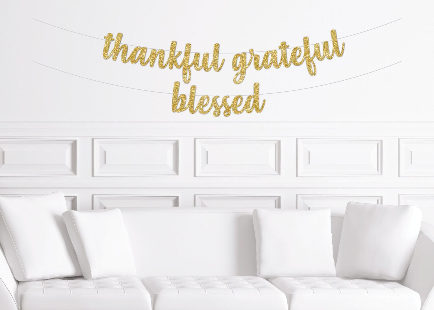 Thankful Grateful Blessed Banner / Thanksgiving Dinner Sign / Decor for Friendsgiving Wall Decorations / Mantle Garland Bunting