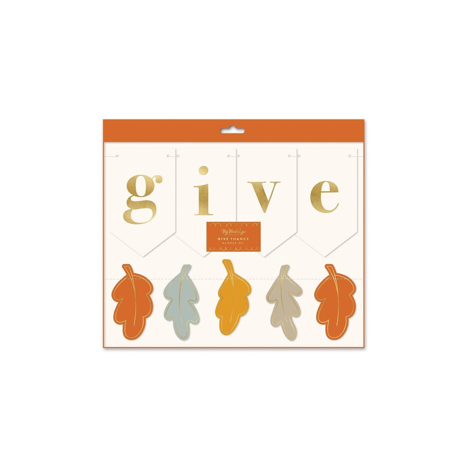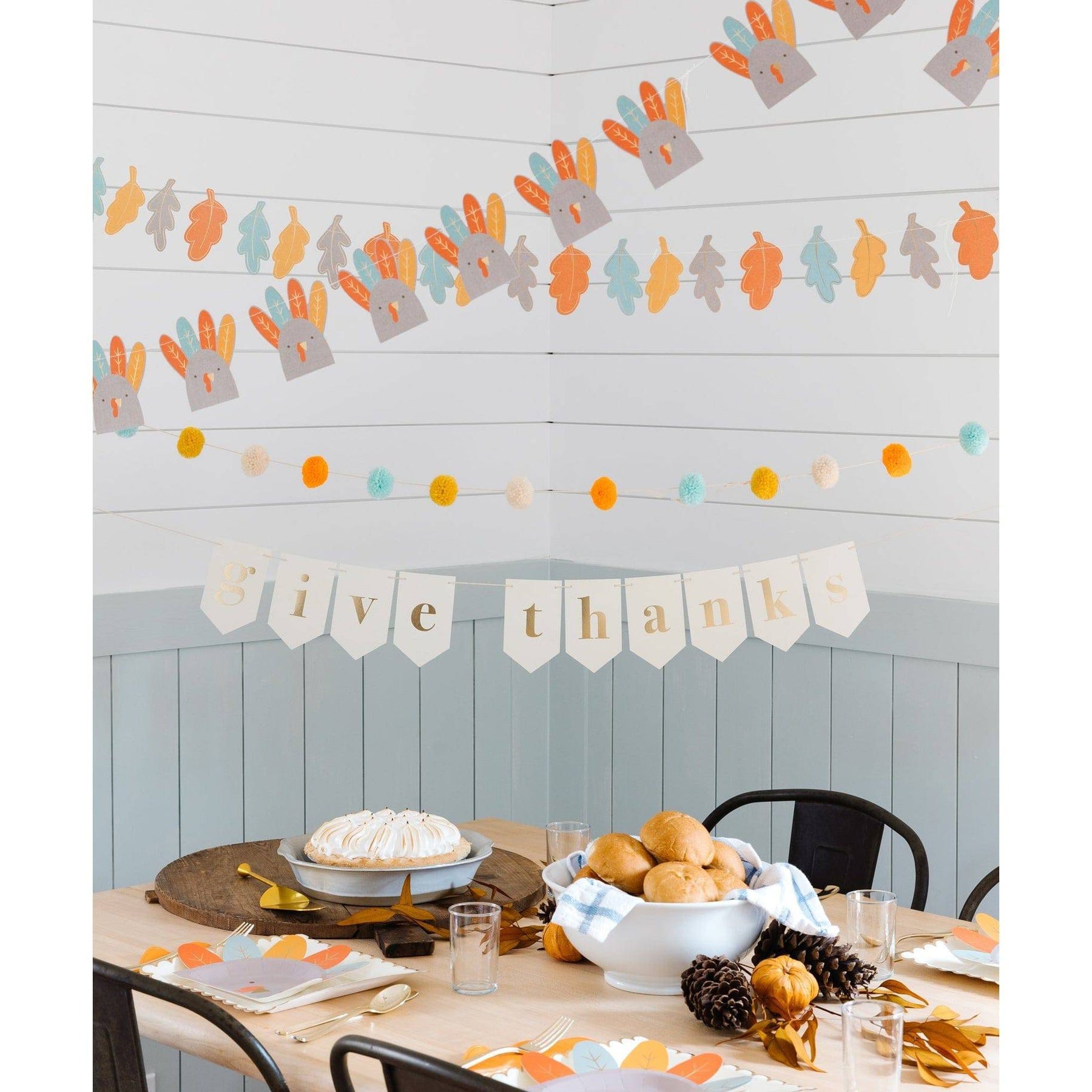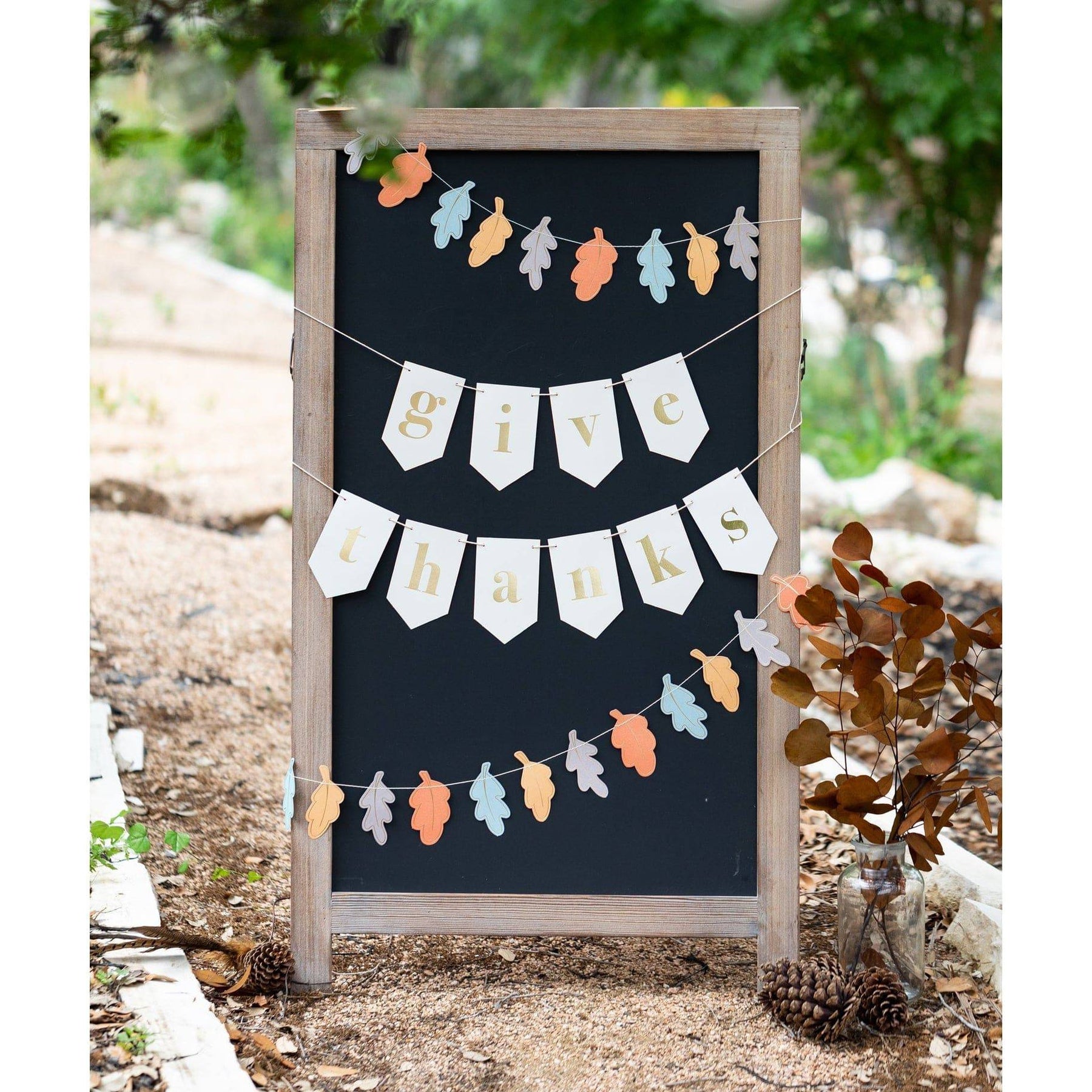 Give thanks this holiday with this pennant banner and leaf garland set.