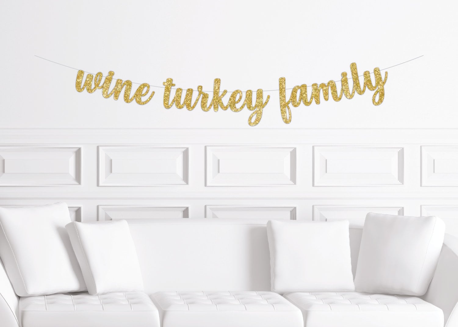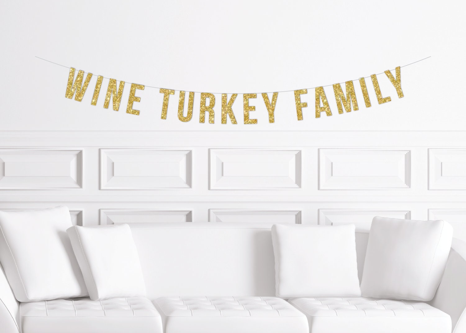 Wine, Turkey, Family Thanksgiving Dinner Celebration Banner, Decor, Decorations WTF Friendsgiving