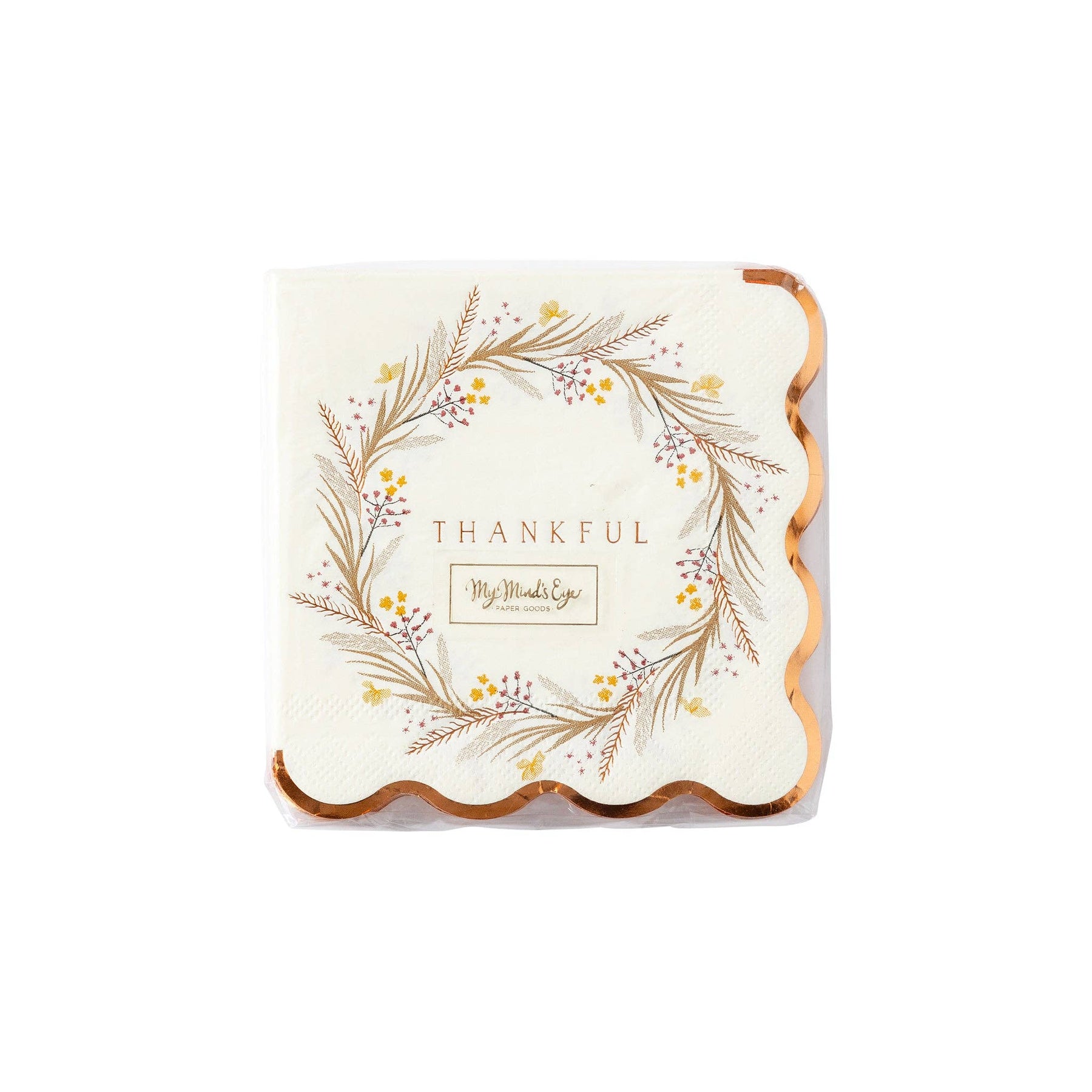 Add some playful flair to your harvest table with the Thankful Wreath Napkin! Not only does it add functionality, but it also brings humor and gratitude to your gathering. With a quirky design and 18 pack, this napkin is sure to bring smiles to your guests' faces.