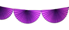 These beautiful spanning purple honeycomb fan garlands are made with six scallops of tissue paper "half-fans" and span approximately 10.5 feet when hanging at a slight dip. Made to last with high quality honeycomb tissue paper, simply fold down after your event and store until the next party! This fan garland will add a touch of elegance to your party backdrop.