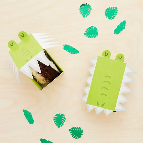 Meet Snappy—your cake's new best friend! These adorable crocodile-shaped mini cake boxes keep your baked creations safe and pristine from party to plate. With simple assembly and a fun design that'll make guests smile, this 10-pack is perfect for birthdays, bake sales, and special treats. No bites here, just pure cake-protecting charm!