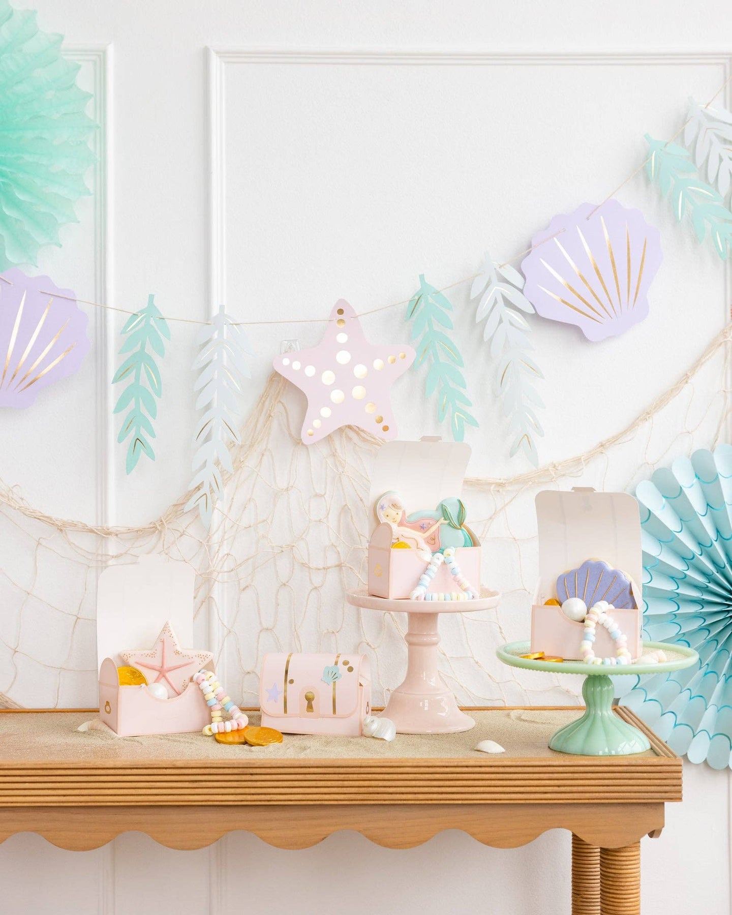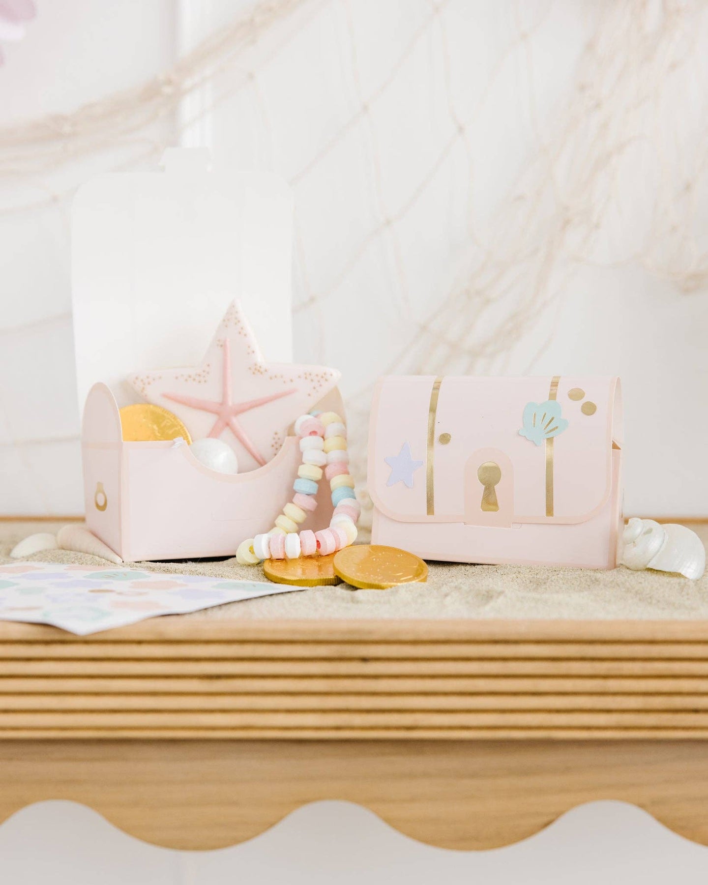 Get ready for a sea-sational time with our Treasure Treat Box Set! These treat boxes shaped like treasure chests are ideal for any under the sea bash. Fill them up with your top picks of goodies and watch your guests uncover the hidden gems inside. It's a one-of-a-kind and playful touch to liven up your gathering!