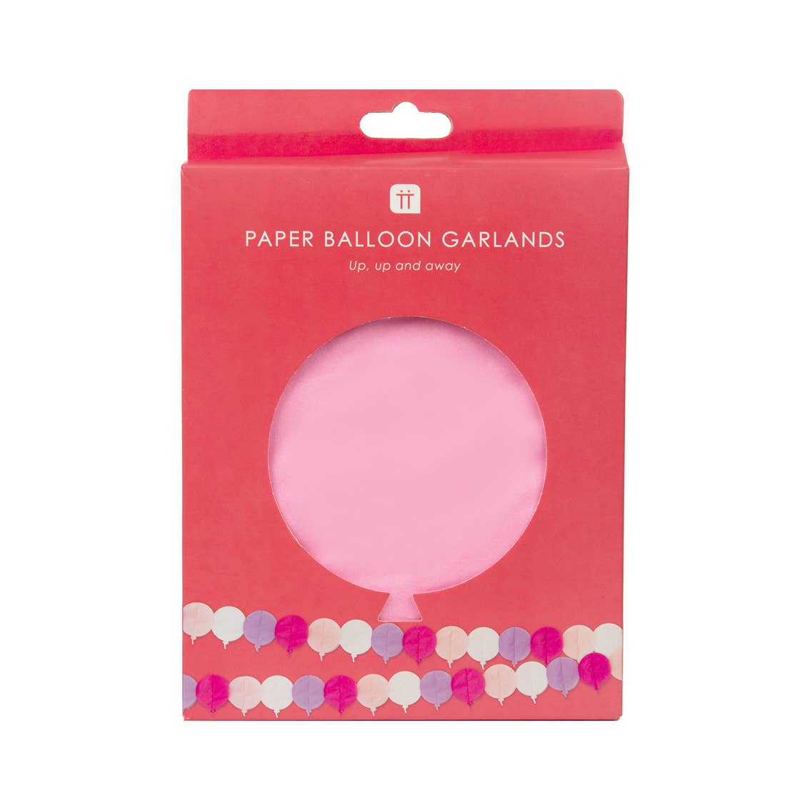 Pink Birthday Balloons Garlands by Talking Tables. An alternative to your usual party balloons, these pink, purple and white paper garlands make a fun and unique addition to your party aisle. Coming in a pack of 3, these balloon decorations are ideal for a birthday party, on Valentines day or a bridal shower.