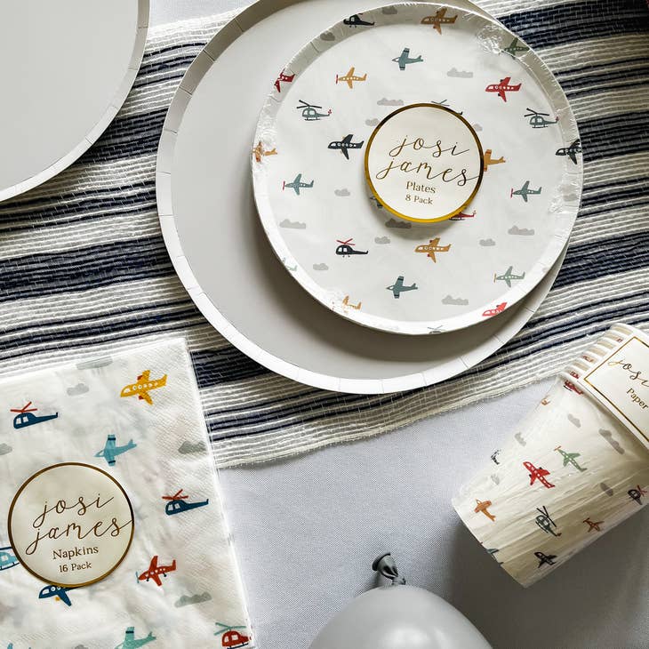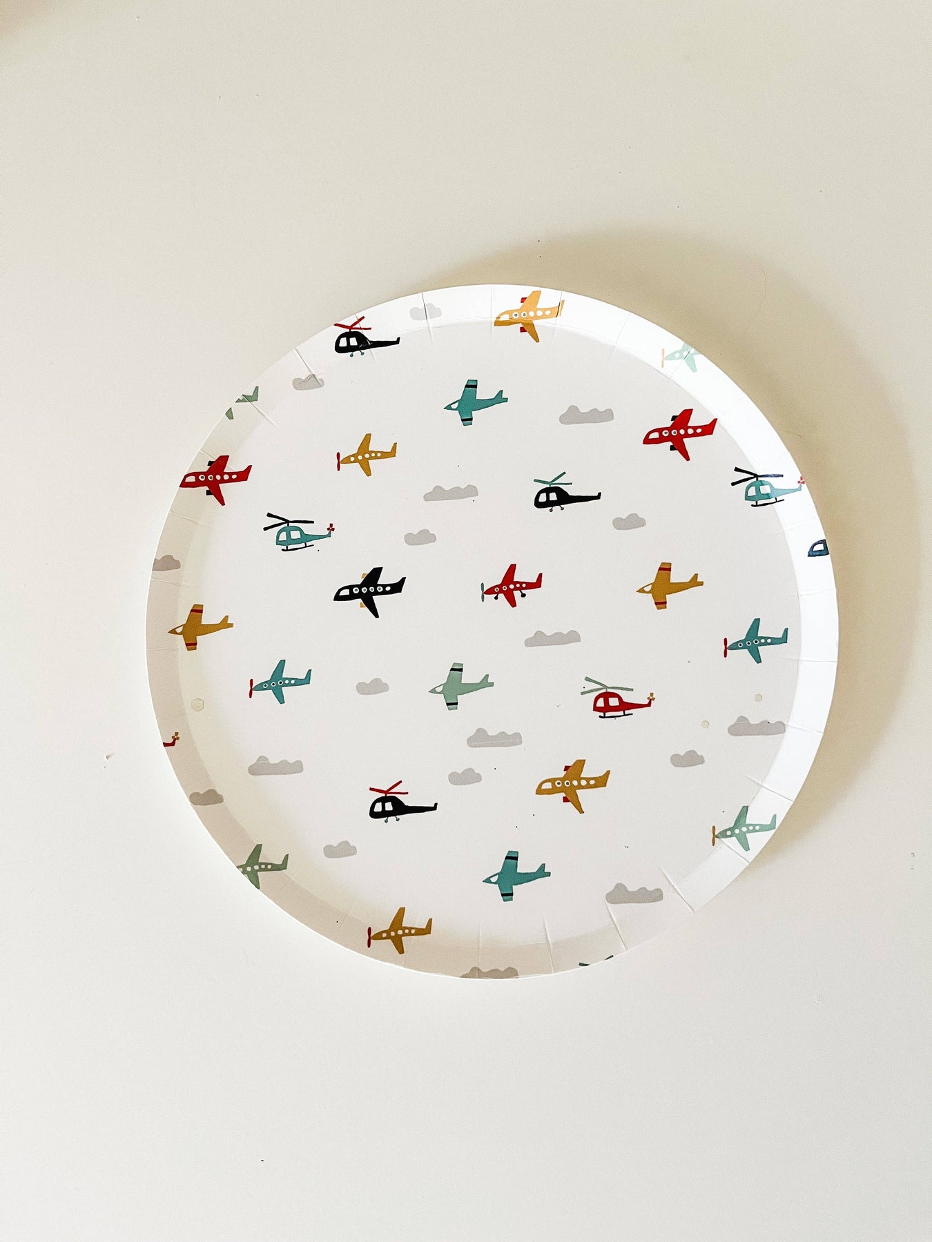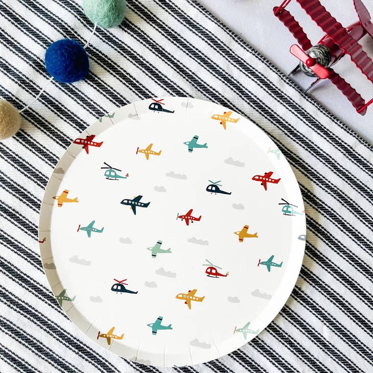 Designed for little aviators, this plate will take their party to new heights of fun and excitement. Whether they're into helicopters, planes, or dreaming of their next adventure in flight, this plate is perfect for any aviation enthusiast. With its vibrant colors and playful design, this plate will make mealtime an exciting experience for your child.