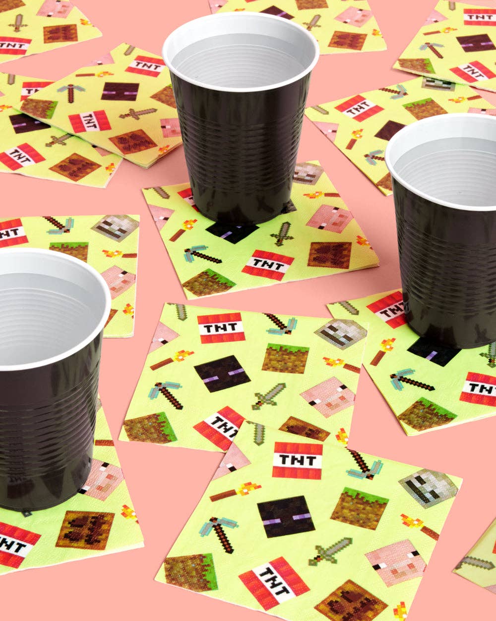 Stock your gaming party with these vibrant 3-ply paper napkins featuring pixelated Minecraft icons throughout. At 5 x 5 inches, they're the ideal compact size for snacks and spills during epic gaming sessions. Add some blocky charm to your celebration and keep the fun going strong—no crafting table needed!