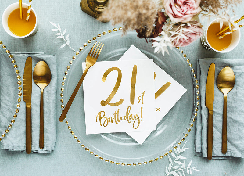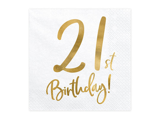 Wish someone a happy birthday with these 21st birthday napkins! These napkins are perfect for a milestone birthday celebration and are sure to bring an extra dose of fun and excitement to any party table. With a golden inscription and fun, celebratory design, they will be sure to make the day extra special for the guest of honor.