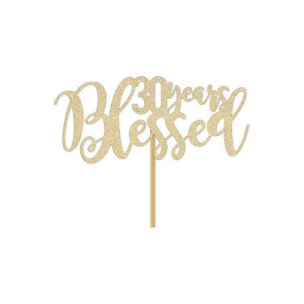 30 Years Blessed Party Supplies | 30th Birthday Cake Topper This is for a 30 Years Blessed cake topper in the color of your choice. One side is glitter the back is white. Each piece is adhered to a bamboo skewer.