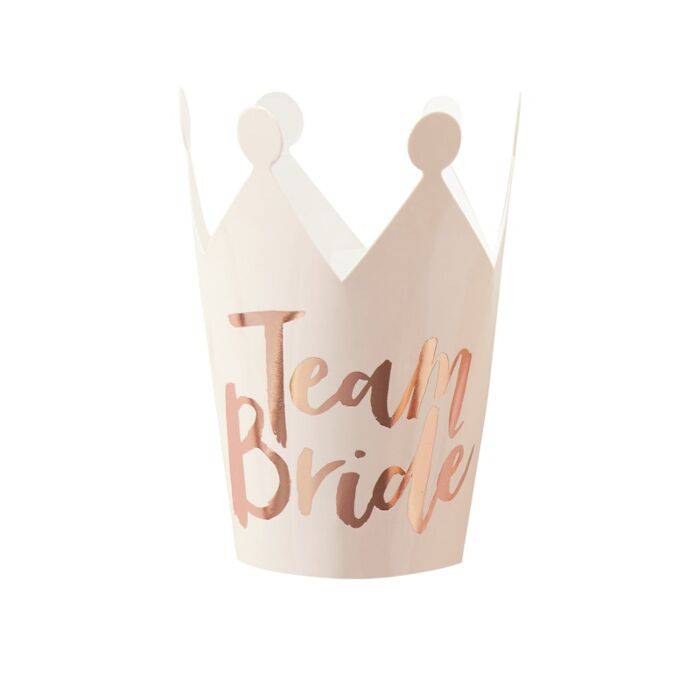 One for every person enjoying the bride's bachelorette party in style. Everyone is going to love these fun Team Bride blush pink paper crowns.