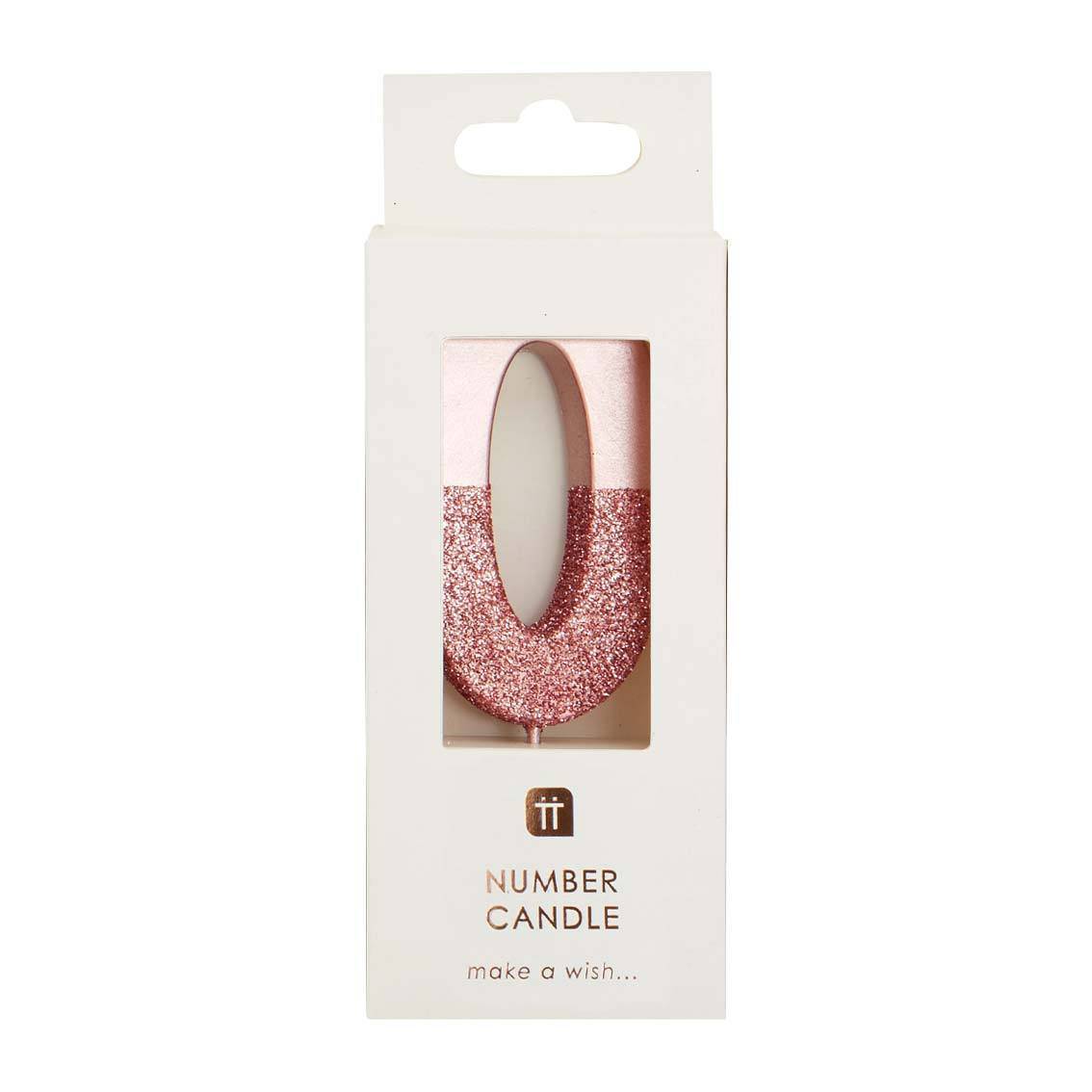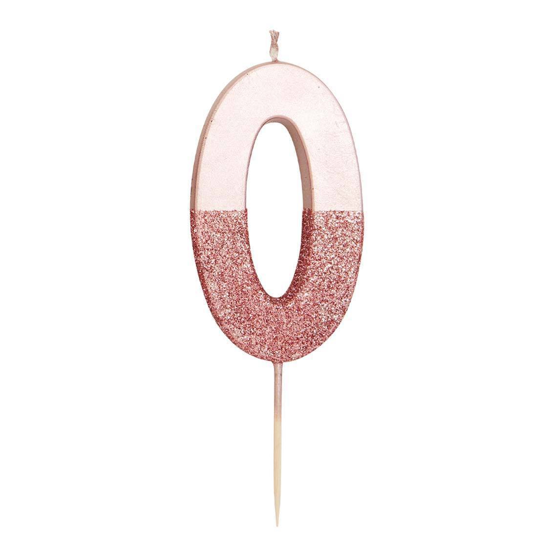 Birthday Number 0 Candle Rose Gold Glitter Dipped S7093