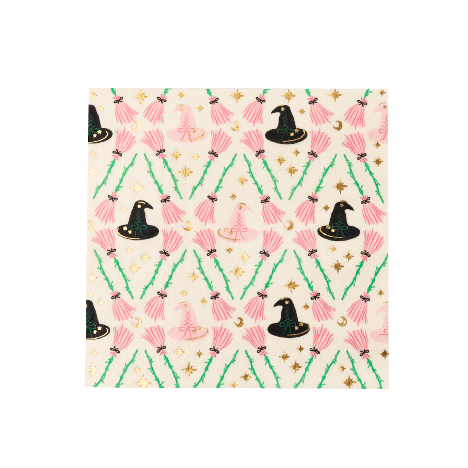 Add a magical touch to your Halloween setup with our playful Witch Hat & Broom Large Napkins. Showcasing charming pink and green witch-inspired designs, these napkins are an ideal choice for your Wicked-themed celebrations.